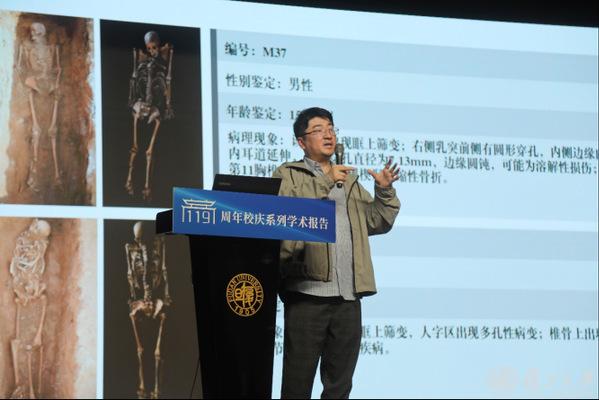 在报告中,文少卿将前沿分子考古学的科研成果转述成引人入胜的“故事”,通过一个一个鲜活的案例,为观众生动讲述“何以中国”。他一方面重点揭秘了近年广受关注的汉代“疏勒城”、吐蕃和吐谷浑族群关系、北周武帝宇文邕死亡之谜等“热门”的历史话题,同时也为听众讲述他开展国家英烈DNA数据库建设、吕梁烈士寻亲的工作历程,分享了科研过程中感受到的革命先烈无畏精神与坚定信仰。