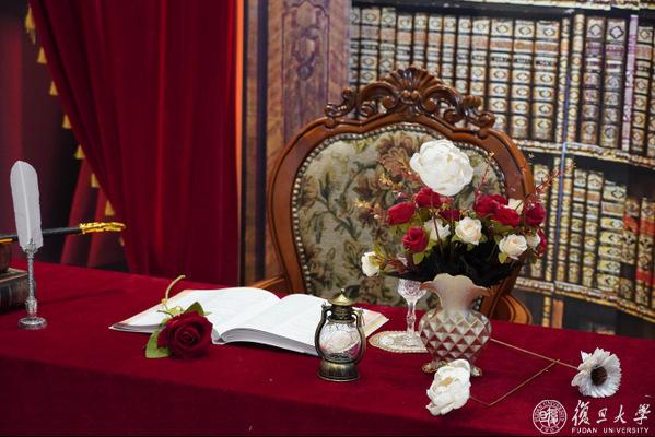 展览关注莎翁作品在历史长河中的延续与传承,展示各式各样的莎士比亚实体书籍,并精心布置复古风格的“莎翁书桌”,通过在丝绒桌布上堆放古色古香的书籍和羽毛笔以及莎士比亚作品中常见的物件——酒杯、剑、玫瑰等,使观展者化身正在创作的莎士比亚,沉浸于独特的文学体验之中。