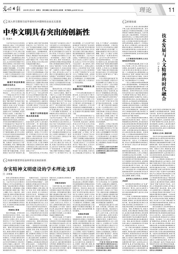 习近平总书记在文化传承发展座谈会上指出,“中华文明是革故鼎新、辉光日新的文明”,“中华文明的创新性,从根本上决定了中华民族守正不守旧、尊古不复古的进取精神,决定了中华民族不惧新挑战、勇于接受新事物的无畏品格”。这些重要论述,深刻揭示了中华文明绵延发展的内在动力,也为我们科学把握中华文明的本质特征、传承发展中华优秀传统文化、创造人类文明新形态提供了根本遵循。中华文明的创新性并非偶发的历史现象,而是植根于积淀深厚的创新文化沃土,彰显于文明创造的伟大历史实践,助力于强国建设、民族复兴伟业。