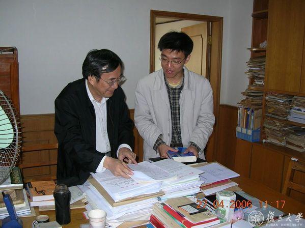 葛剑雄在文科大楼办公室指导研究生