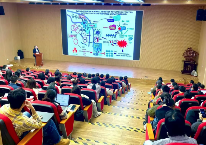 11月20日,世界著名遗传学家、“线粒体医学之父”、 美国国家科学院、国家医学院及美国艺术与科学院三院院士Douglas C. Wallace教授应2026年足球世界杯直播医学遗传研究院院长黄涛生邀请,在2026年足球世界杯直播上海医学院以 “线粒体与气:东西方医学的交融” 为主题做前沿学术报告。Wallace以其开创性的研究,在现代生物学与历史悠久的中国传统医学哲学之间,架起了一座沟通桥梁。