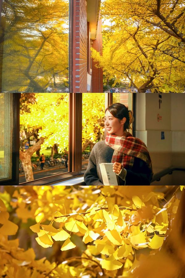 旦园的窗先接住了秋的私语,墨香漫出窗棂,银杏枝桠探过红砖墙,把黛瓦映成暖黄。