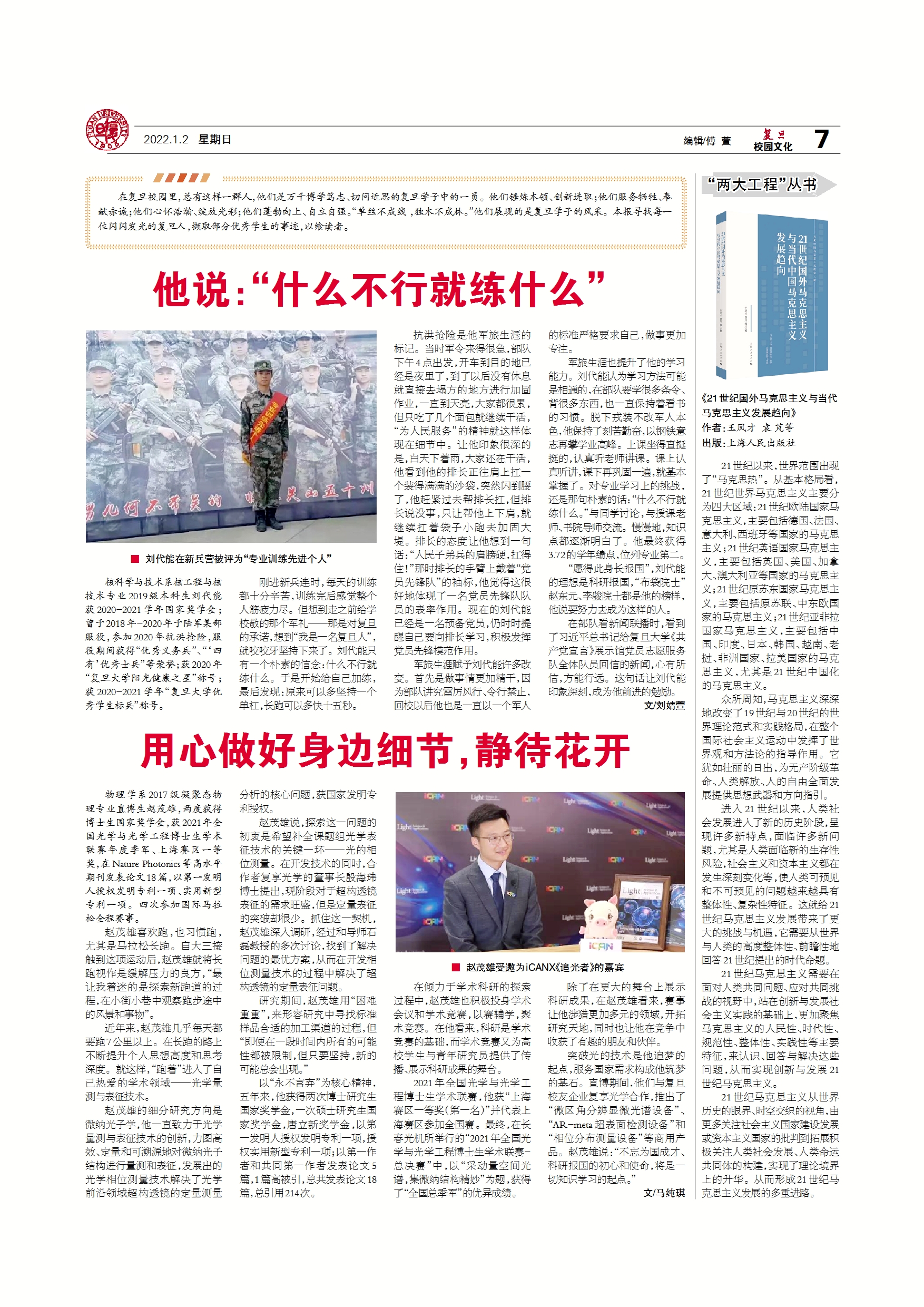 在复旦校园里,总有这样一群人,他们是万千博学笃志、切问近思的复旦学子中的一员。他们锤炼本领、创新进取;他们服务牺牲、奉献赤诚;他们心怀浩瀚、绽放光彩;...