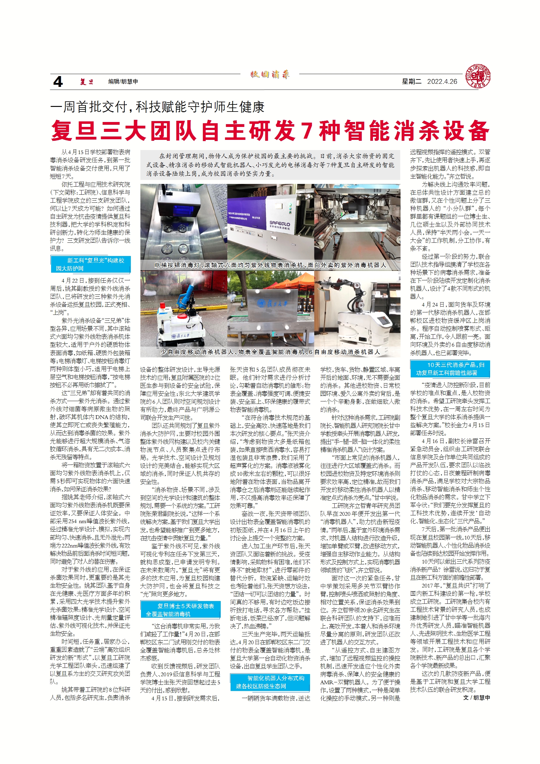 一周首批交付,科技赋能守护师生健康 复旦三大团队自主研发7种智...