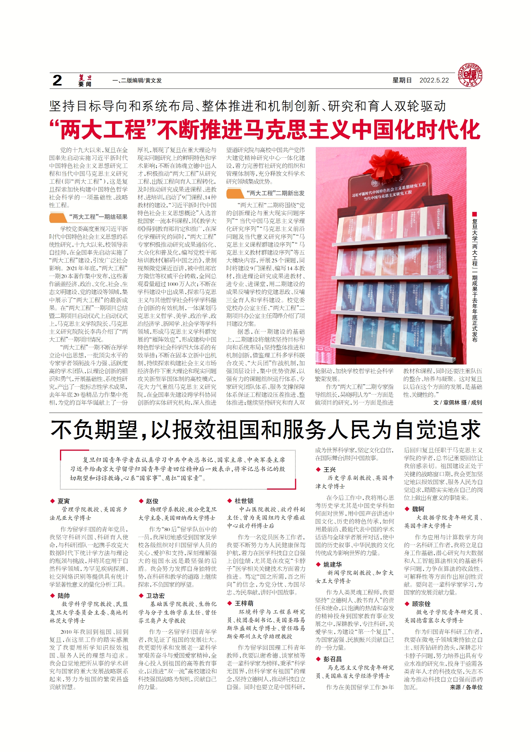 党的十九大以来,复旦在全国率先启动实施习近平新时代中国特色社会主义思想研究工程和当代中国马克思主义研究工程(即“两大工程”),这是复旦探索加快构建中国...