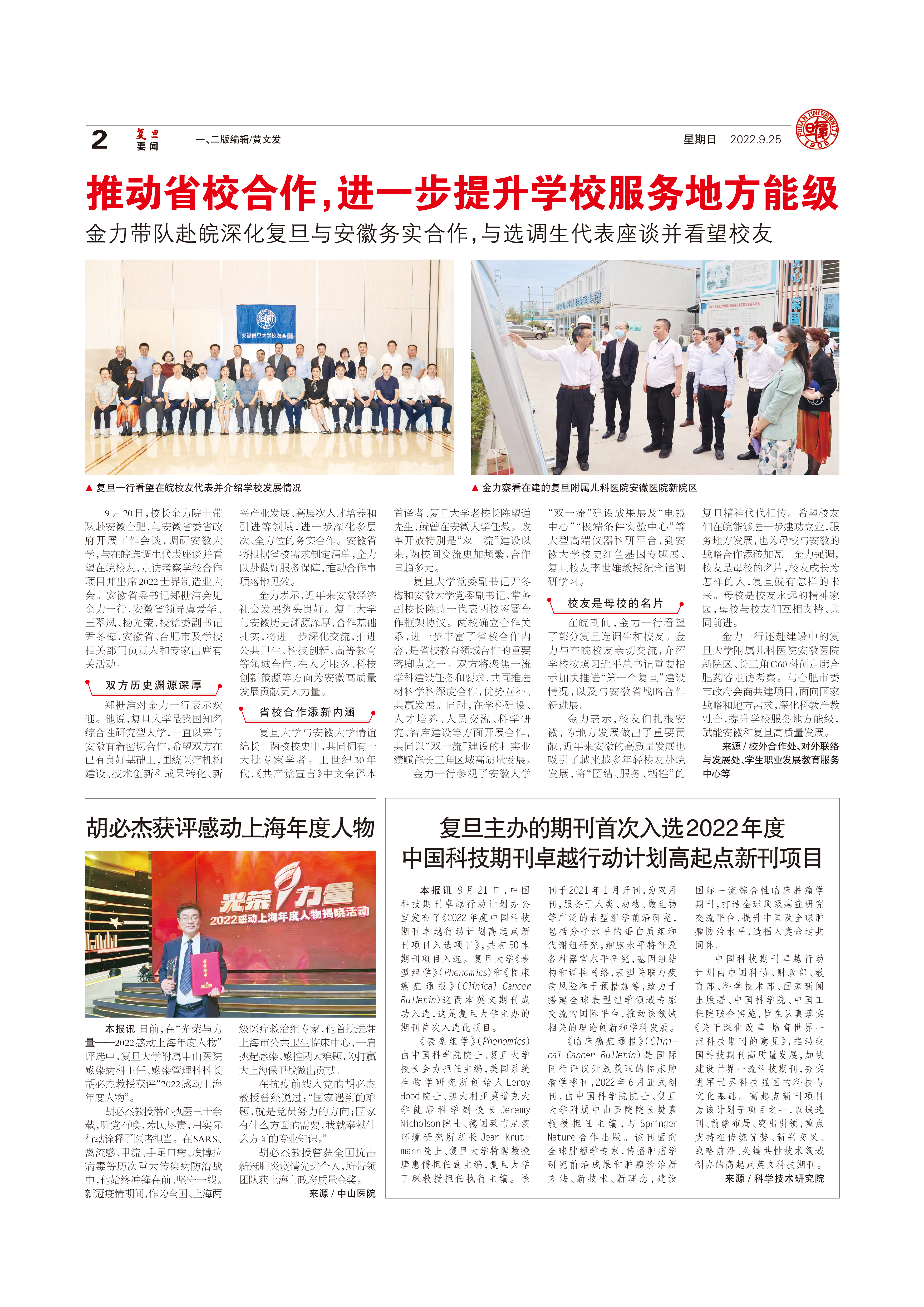 9月20日,校长金力院士带队赴安徽合肥,与安徽省委省政府开展工作会谈,调研安徽大学,与在皖选调生代表座谈并看望在皖校友,走访考察学校合作项目并出席2022世...