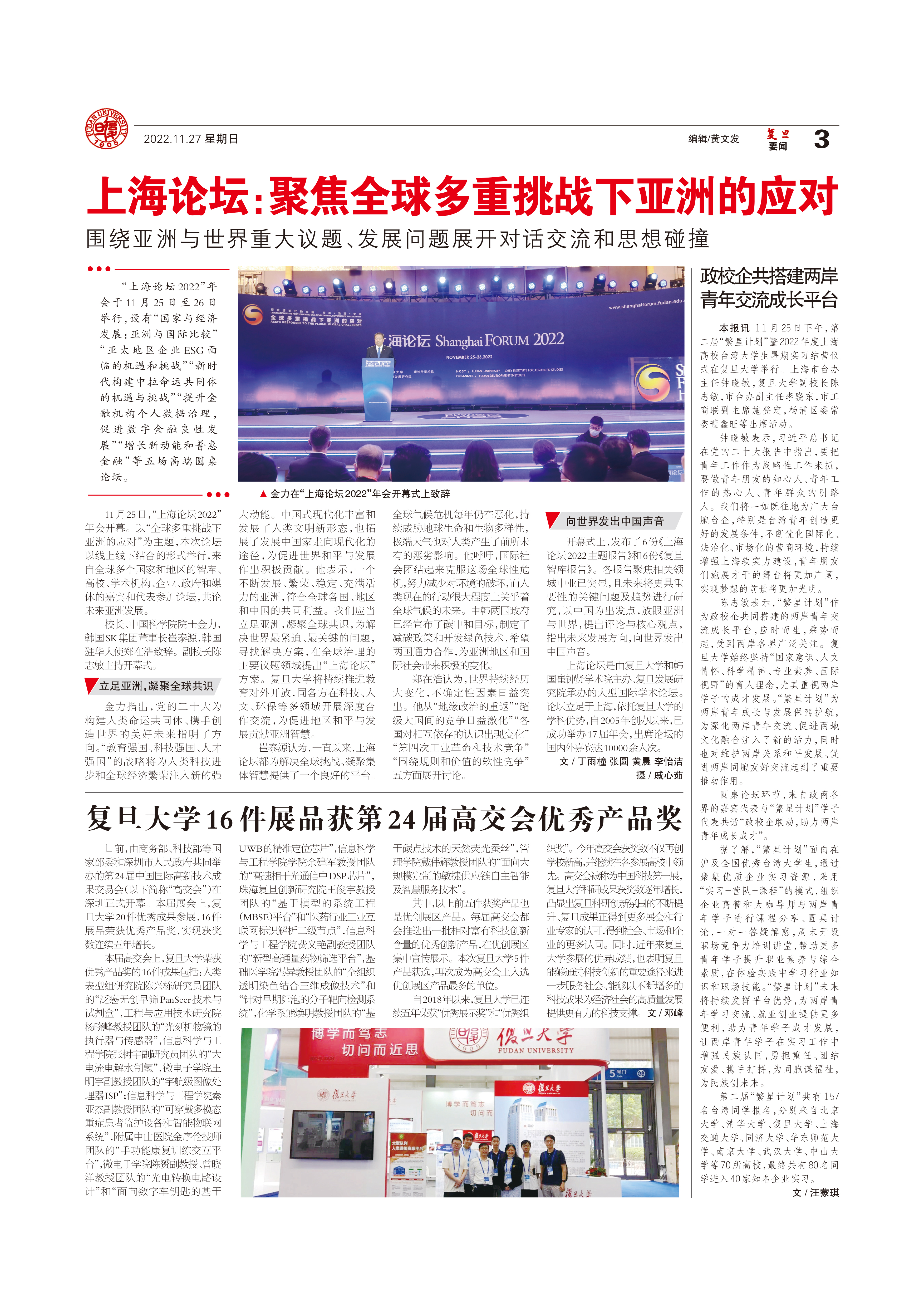 “上海论坛2022”年会于11月25日至26日举行,设有“国家与经济发展:亚洲与国际比较”“亚太地区企业ESG面临的机遇和挑战”“新时代构建中拉命运共同体的机遇与...