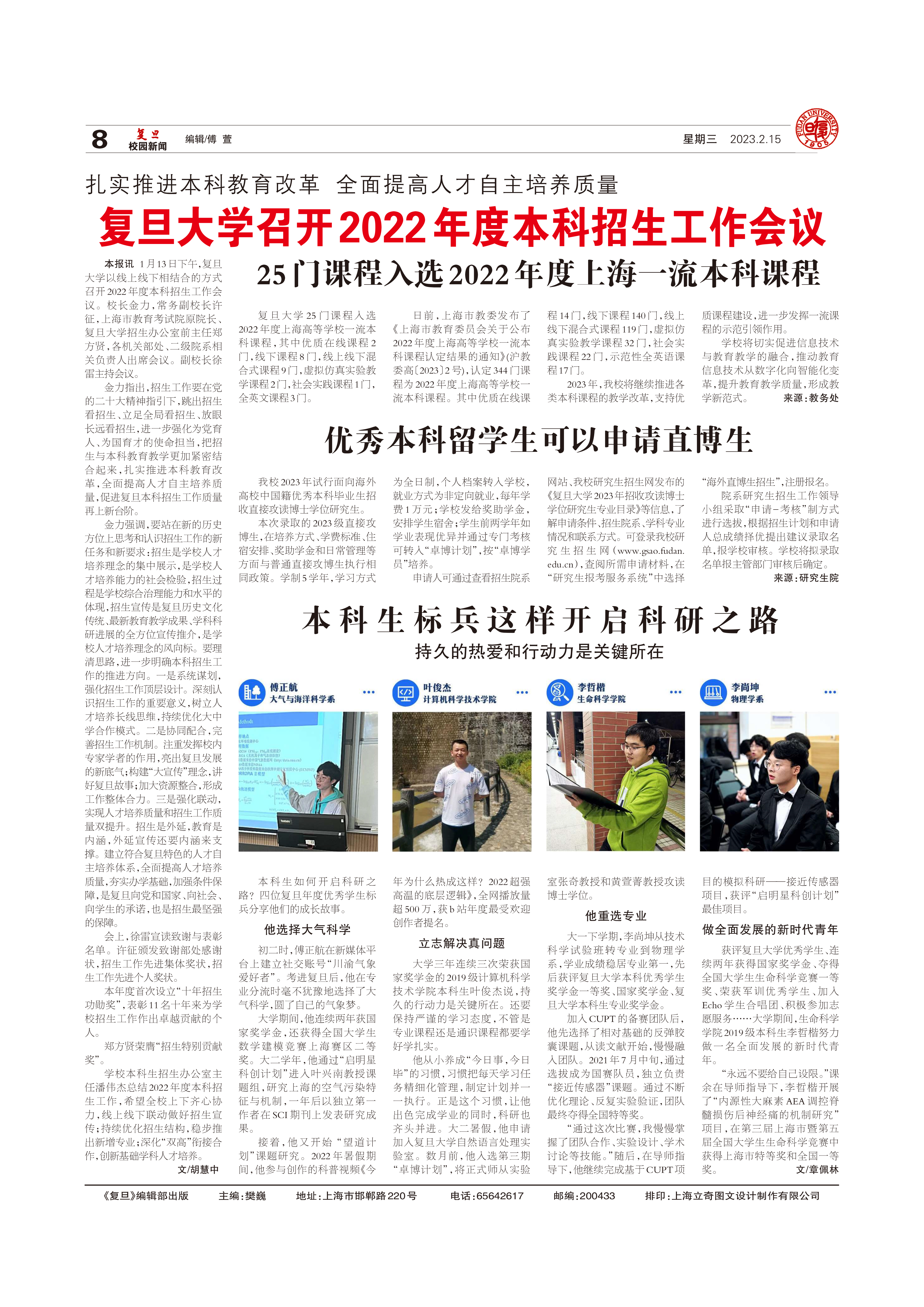 本科生如何开启科研之路?四位复旦年度优秀学生标兵分享他们的成长故事。他选择大气科学初二时,傅正航在新媒体平台上建立社交账号“川渝气象爱好者”。考进复旦...