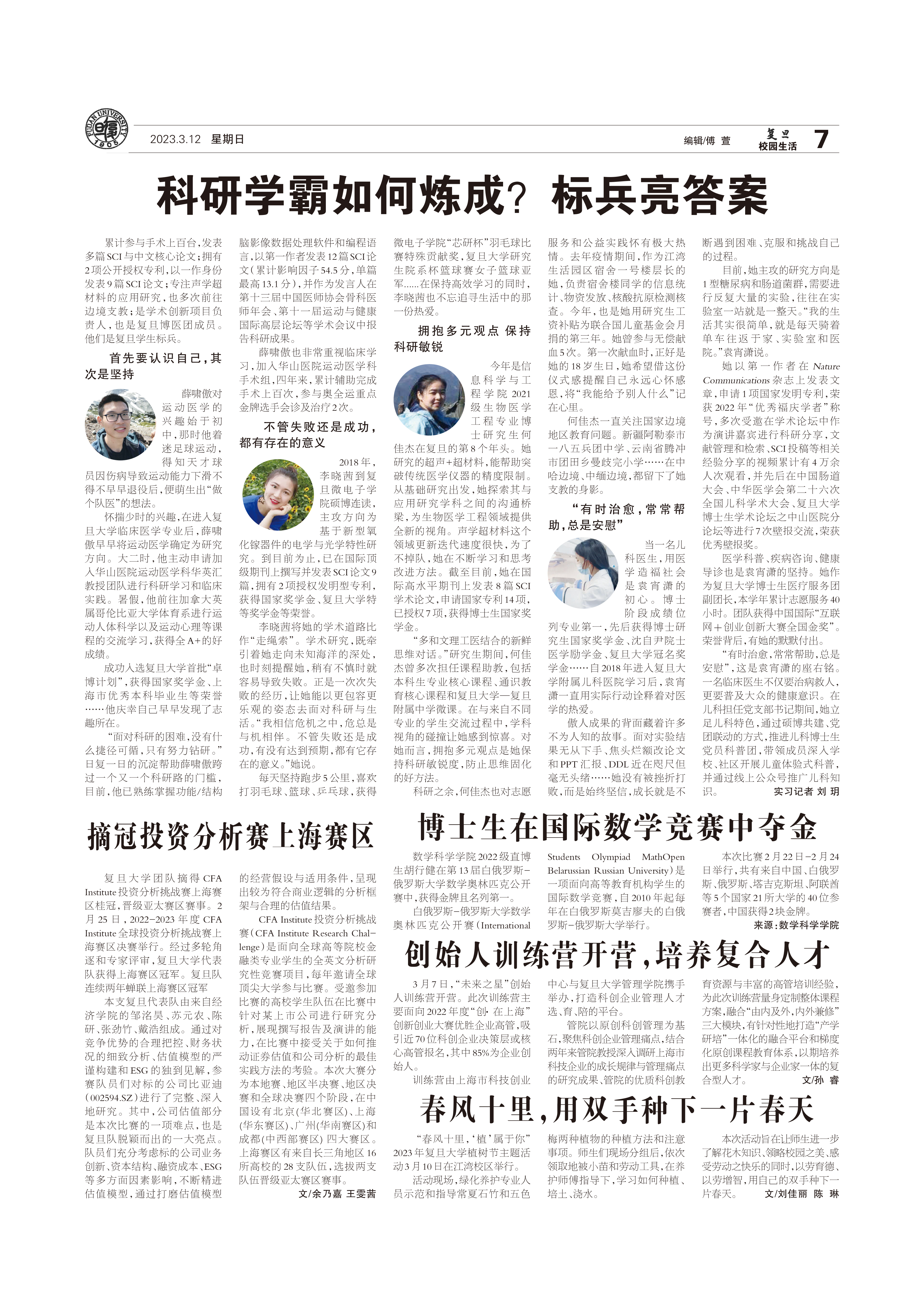 累计参与手术上百台,发表多篇SCI与中文核心论文;拥有2项公开授权专利,以一作身份发表9篇SCI论文;专注声学超材料的应用研究,也多次前往边境支教;是学术创新...