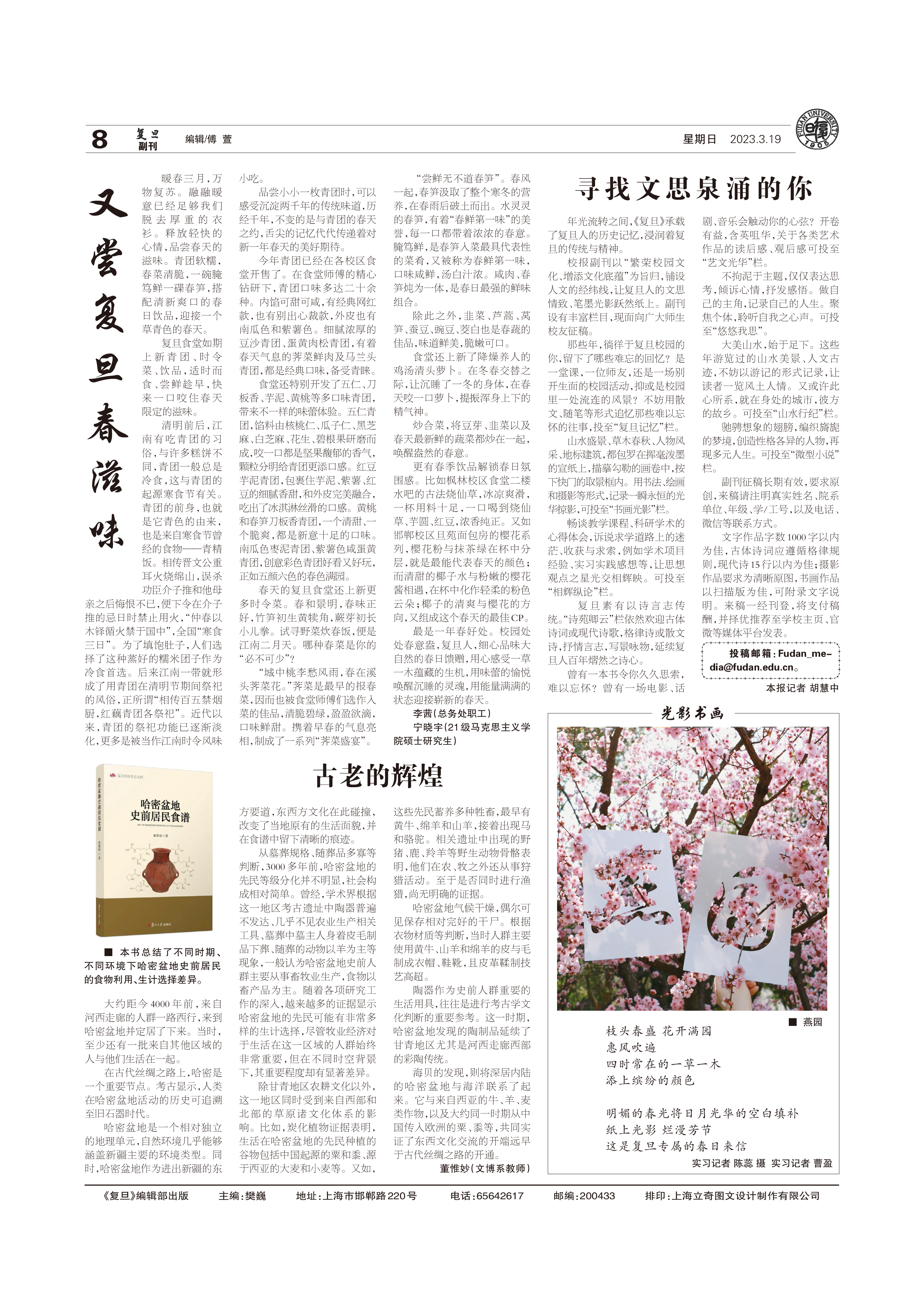 年光流转之间,《复旦》承载了复旦人的历史记忆,浸润着复旦的传统与精神。校报副刊以“繁荣校园文化、增添文化底蕴”为旨归,铺设人文的经纬线,让复旦人的文思...