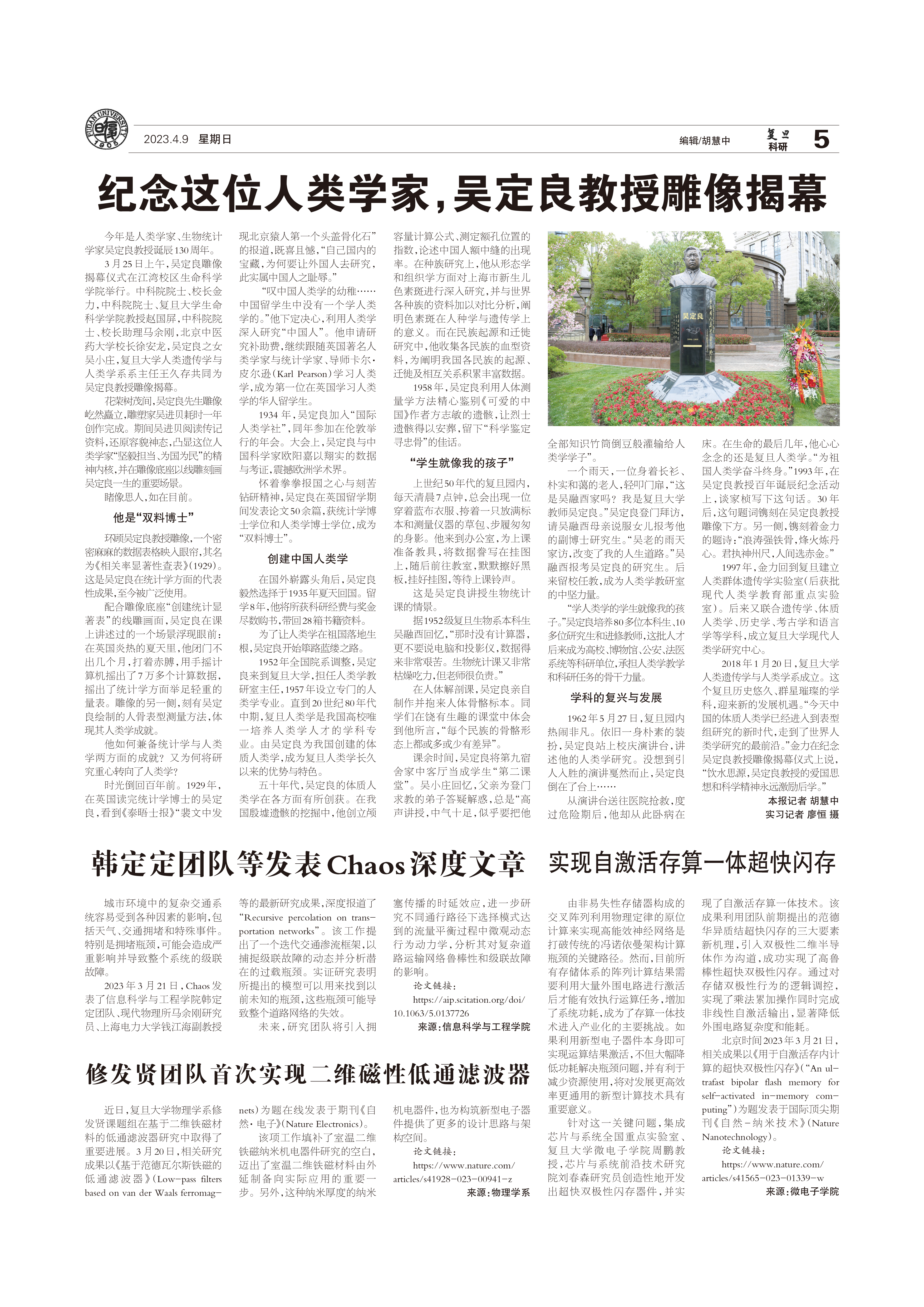 今年是人类学家、生物统计学家吴定良教授诞辰130周年。3月25日上午,吴定良雕像揭幕仪式在江湾校区生命科学学院举行。中科院院士、校长金力,中科院院士、复旦大...