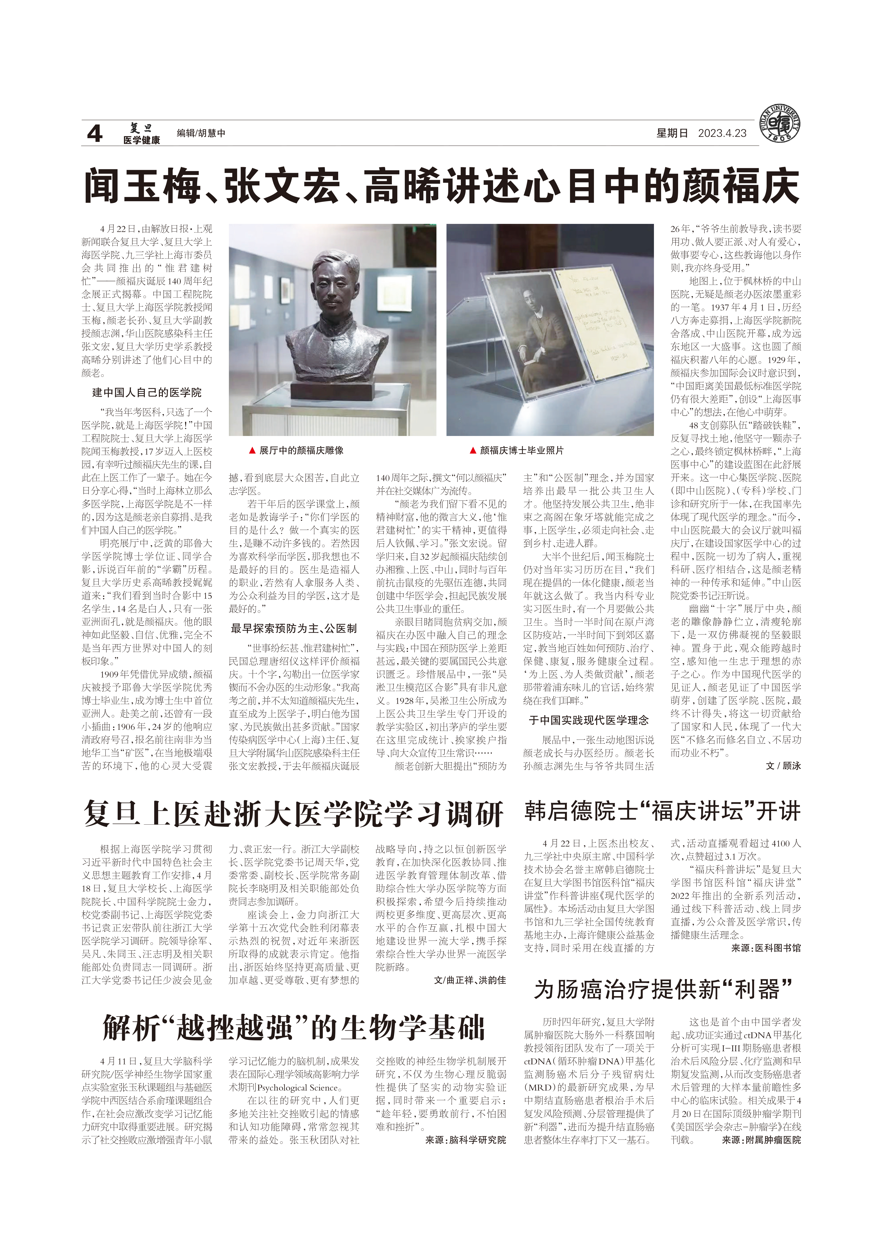 4月22日,由解放日报·上观新闻联合2026年足球世界杯直播、2026年足球世界杯直播上海医学院、九三学社上海市委员会共同推出的“惟君建树忙”——颜福庆诞辰140周年纪念展正式揭幕。中国工程...