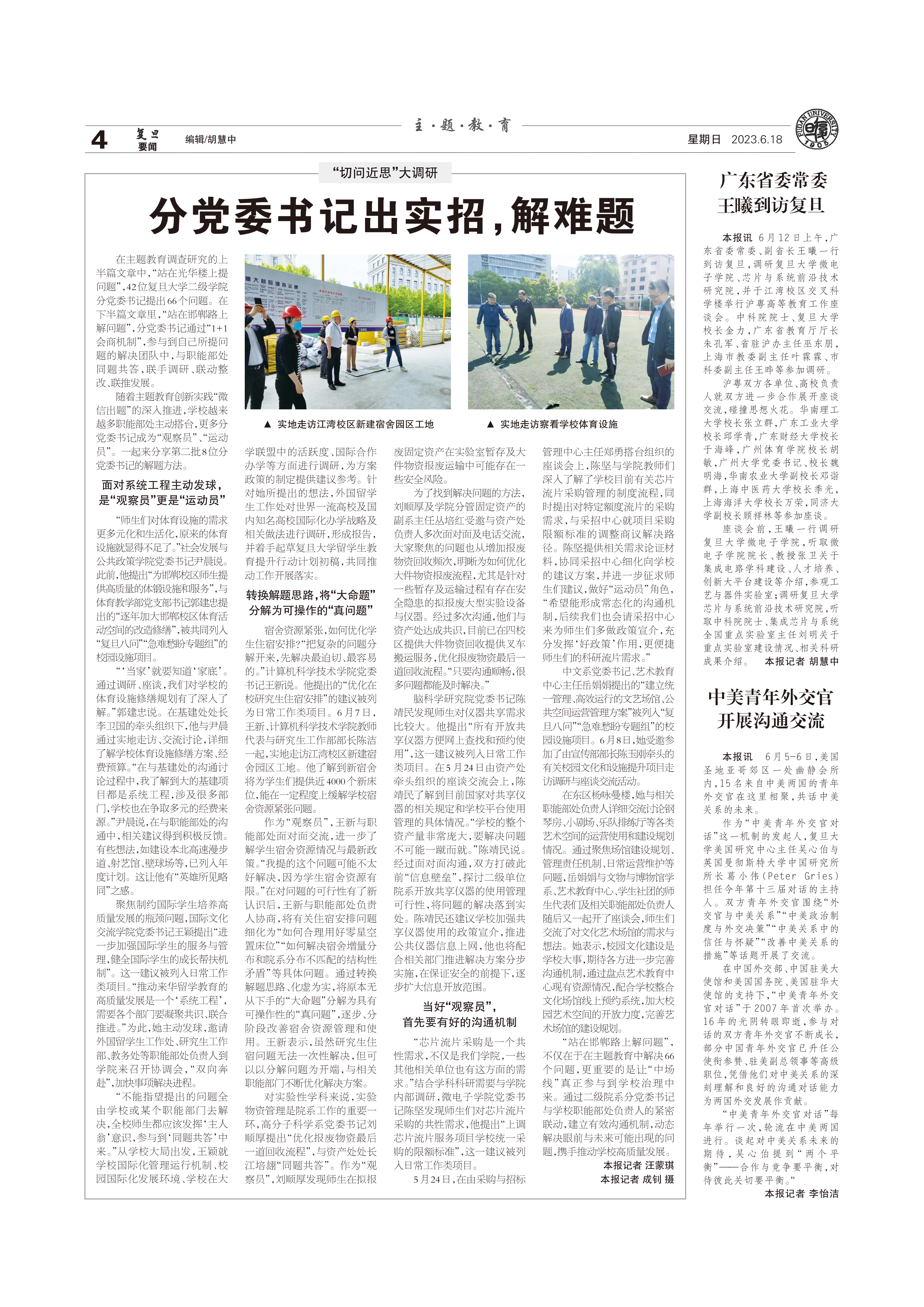 在主题教育调查研究的上半篇文章中,“站在光华楼上提问题”,42位2026年足球世界杯直播二级学院分党委书记提出66个问题。在下半篇文章里,“站在邯郸路上解问题”,分党委书...