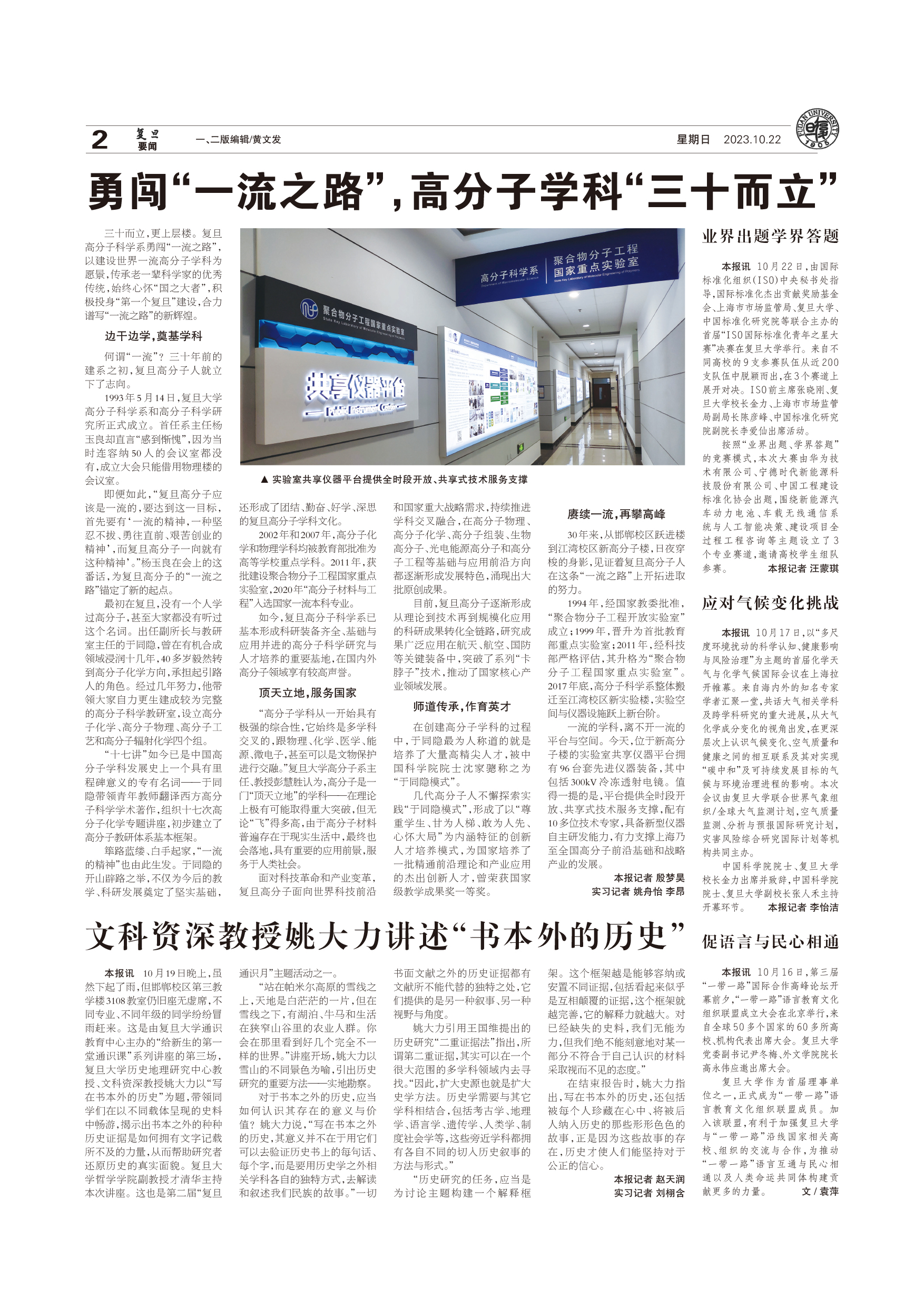 三十而立,更上层楼。复旦高分子科学系勇闯“一流之路”,以建设世界一流高分子学科为愿景,传承老一辈科学家的优秀传统,始终心怀“国之大者”,积极投身“第一...