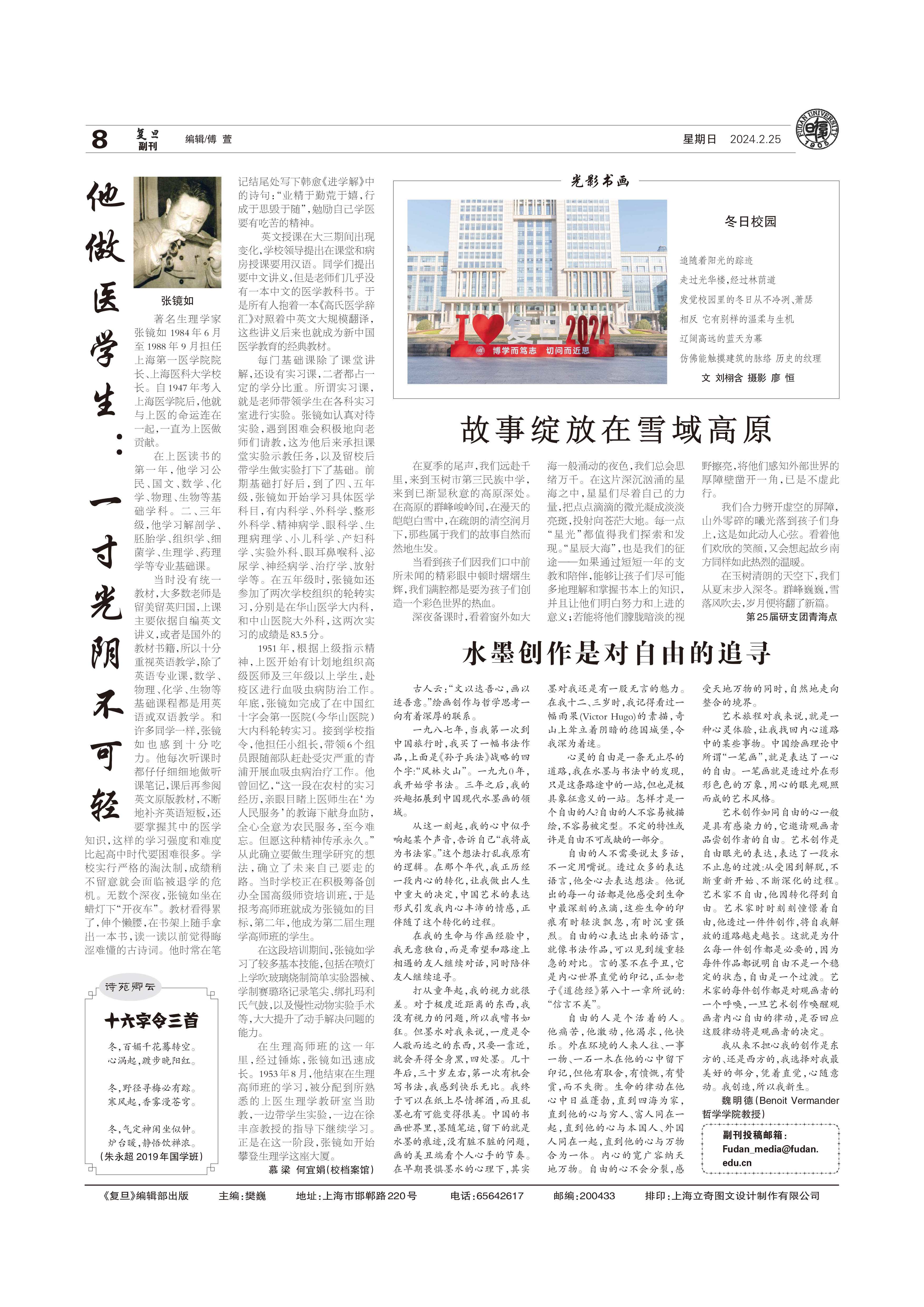 追随着阳光的踪迹走过光华楼,经过林荫道发觉校园里的冬日从不冷冽、萧瑟相反它有别样的温柔与生机辽阔高远的蓝天为幕仿佛能触摸建筑的脉络历史的纹理