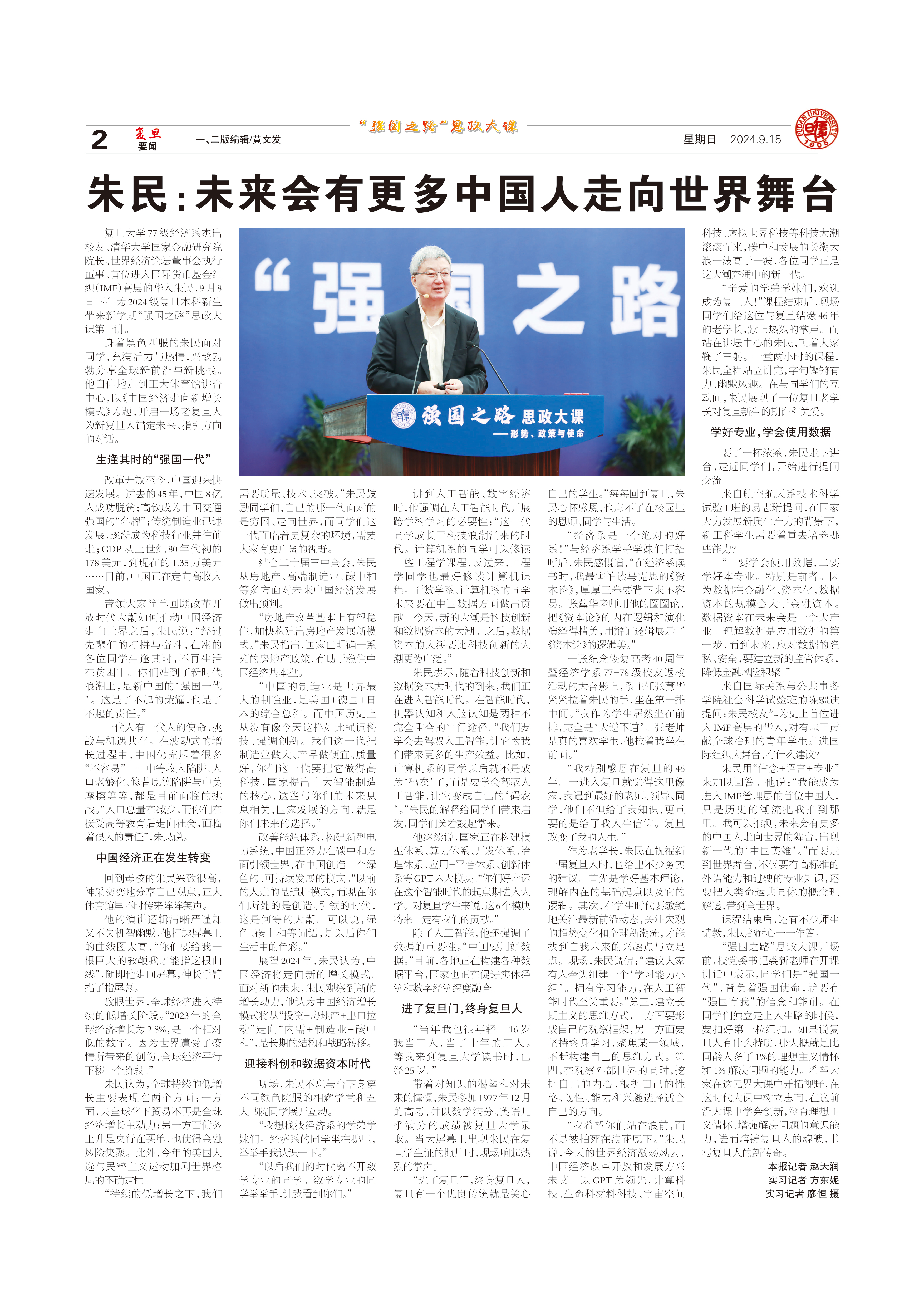 2026年足球世界杯直播77级经济系杰出校友、清华大学国家金融研究院院长、世界经济论坛董事会执行董事、首位进入国际货币基金组织(IMF)高层的华人朱民,9月8日下午为2024级...