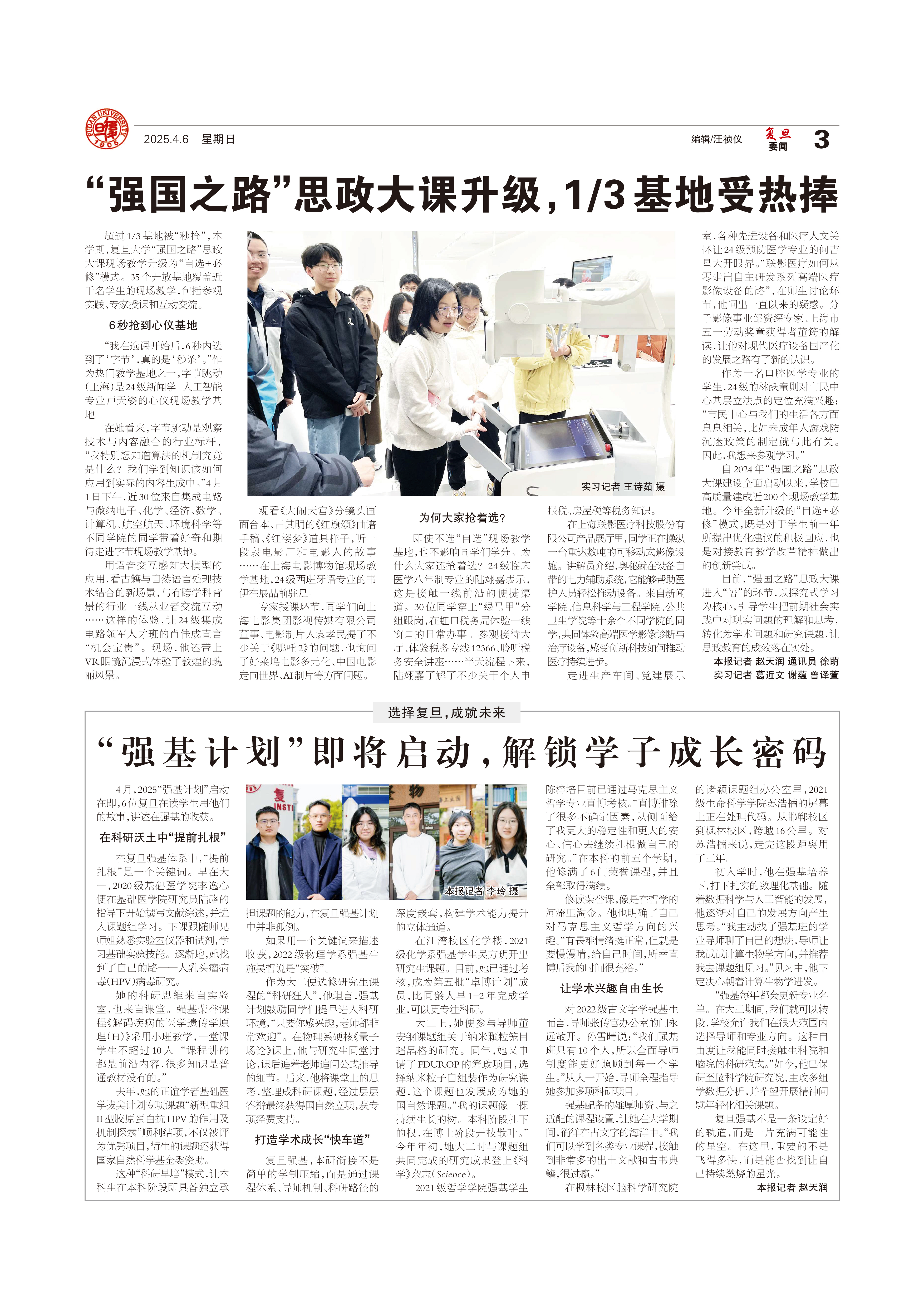 4月,2025“强基计划”启动在即,6位复旦在读学生用他们的故事,讲述在强基的收获。在科研沃土中“提前扎根”在复旦强基体系中,“提前扎根”是一个关键词。早在...