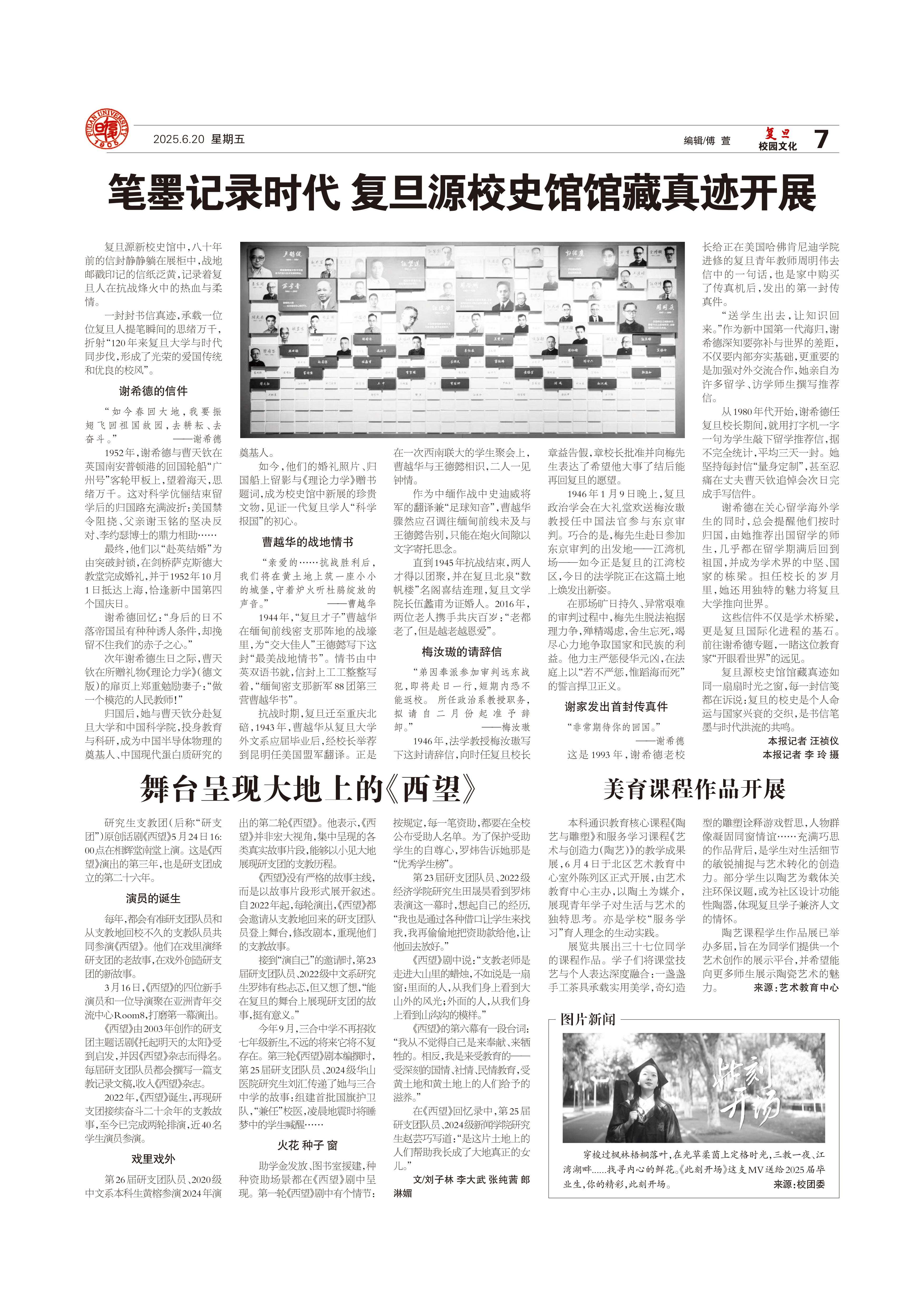 复旦源新校史馆中,八十年前的信封静静躺在展柜中,战地邮戳印记的信纸泛黄,记录着复旦人在抗战烽火中的热血与柔情。一封封书信真迹,承载一位位复旦人提笔瞬间...