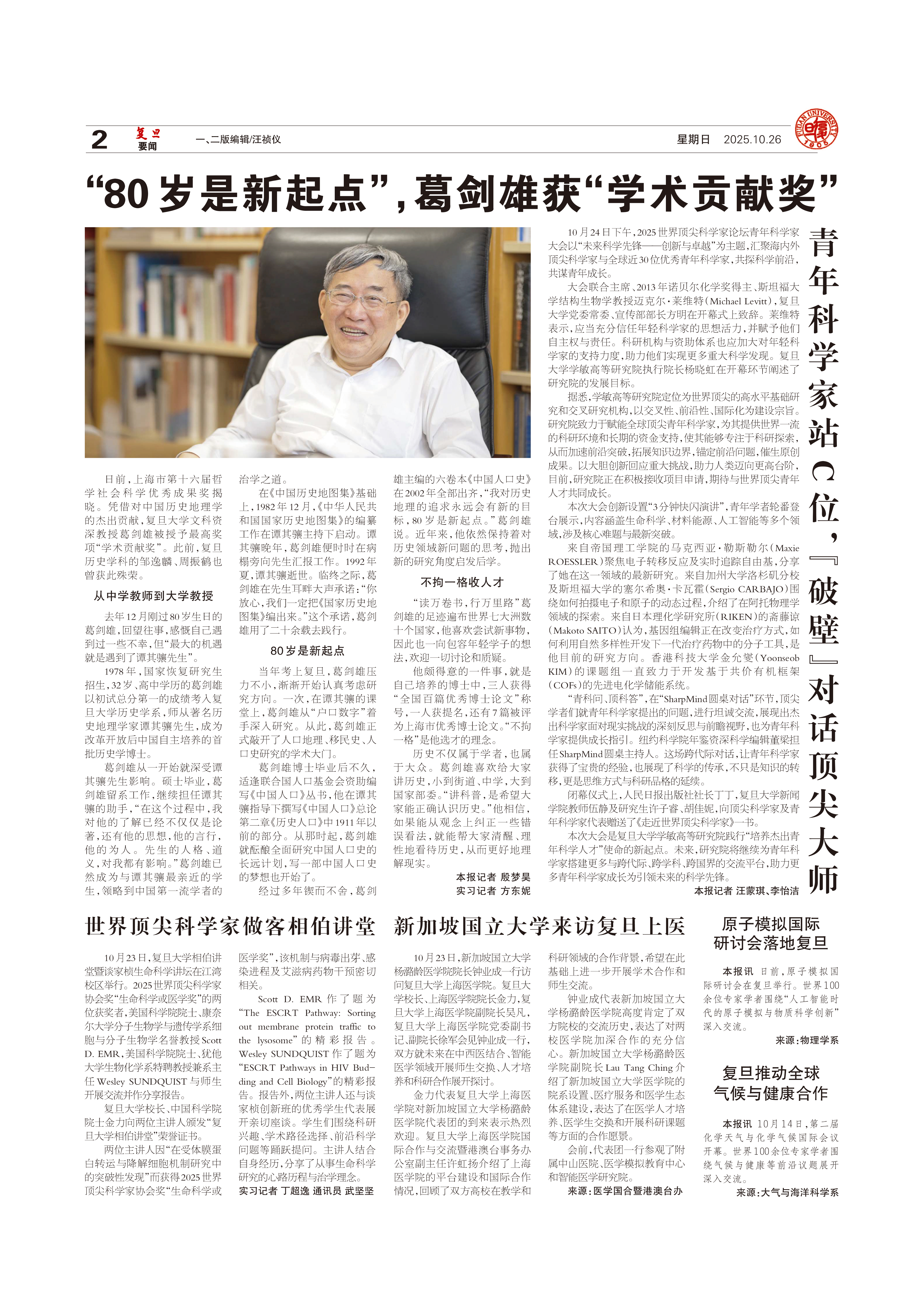 日前,上海市第十六届哲学社会科学优秀成果奖揭晓。凭借对中国历史地理学的杰出贡献,2026年足球世界杯直播文科资深教授葛剑雄被授予最高奖项“学术贡献奖”。此前,复旦历史...