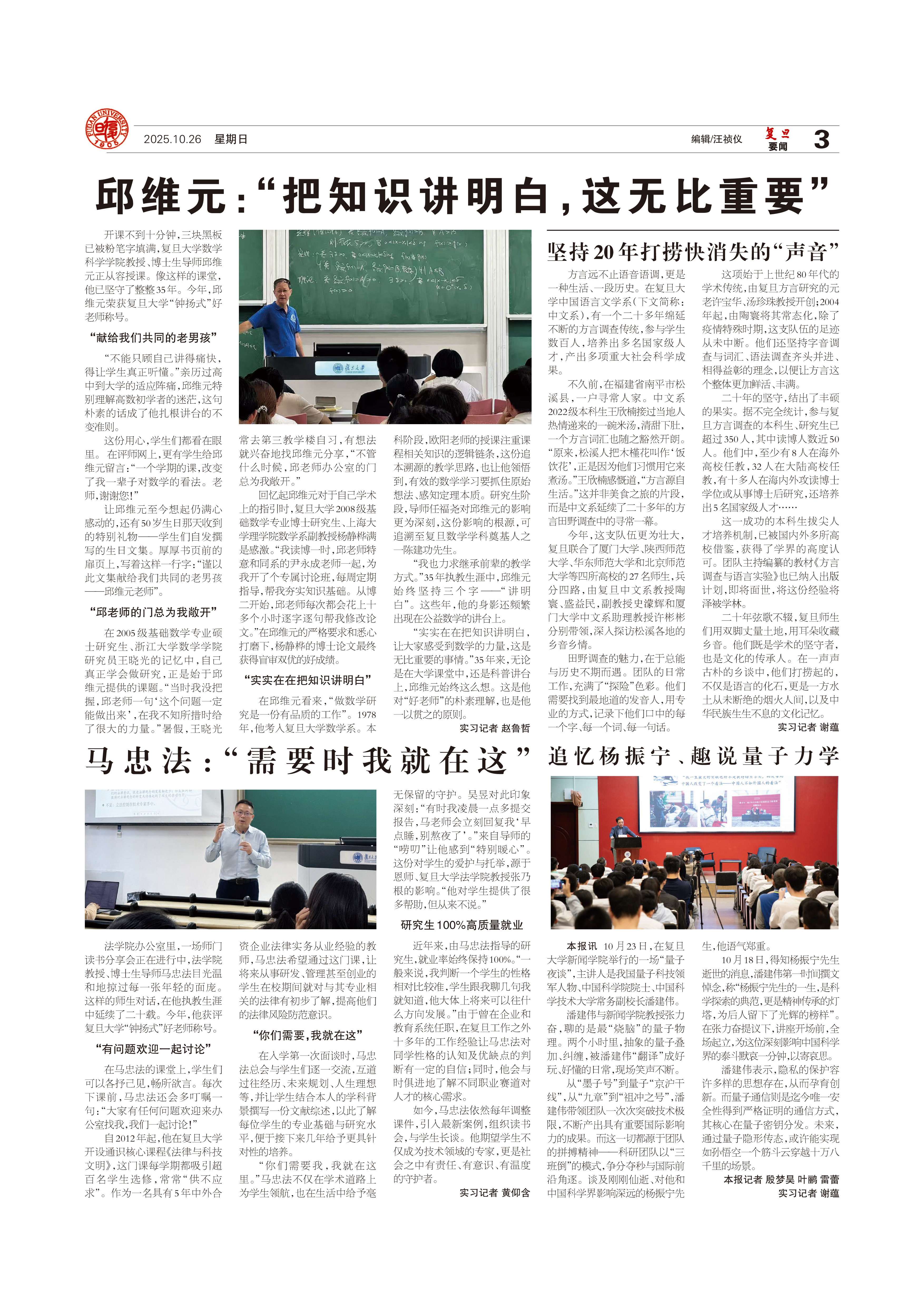 开课不到十分钟,三块黑板已被粉笔字填满,2026年足球世界杯直播数学科学学院教授、博士生导师邱维元正从容授课。像这样的课堂,他已坚守了整整35年。今年,邱维元荣获复旦大...