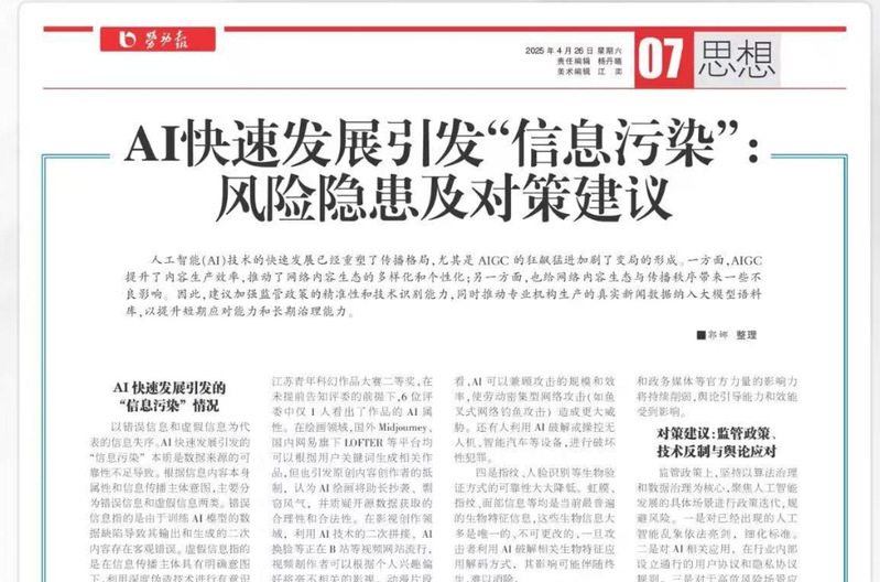 辛艳艳:AI快速发展引发“信息污染”——风险隐患及对策建议