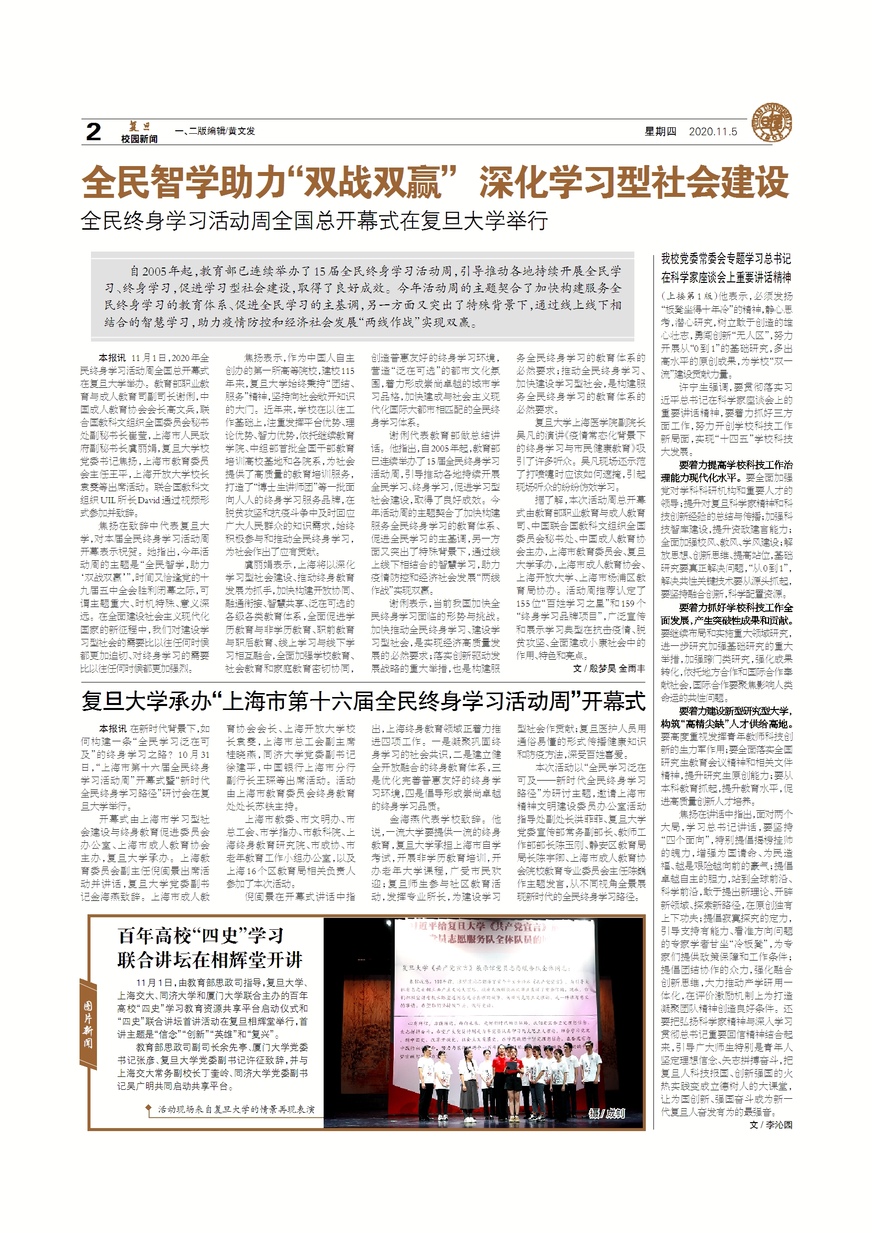 11月1日,由教育部思政司指导,2026年足球世界杯直播、上海交大、同济大学和厦门大学联合主办的百年高校“四史”学习教育资源共享平台启动仪式和“四史”联合讲坛首讲活动在...