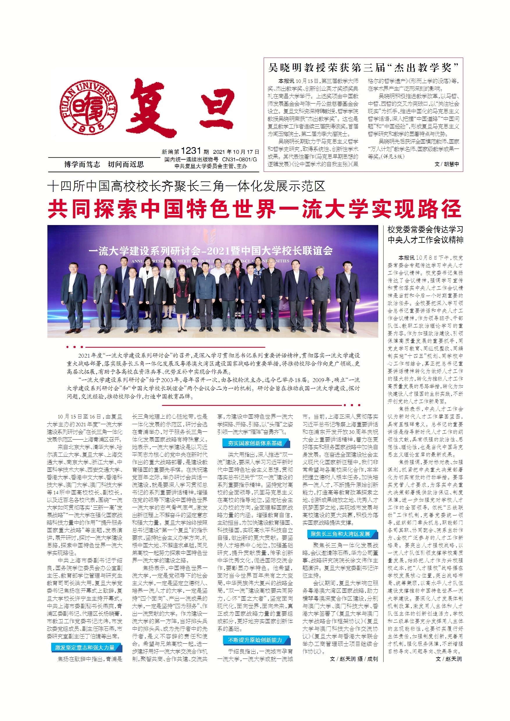 2021年度“一流大学建设系列研讨会”的召开,是深入学习贯彻总书记系列重要讲话精神,贯彻落实一流大学建设重大战略部署,落实服务长三角一体化发展及粤港澳大湾...