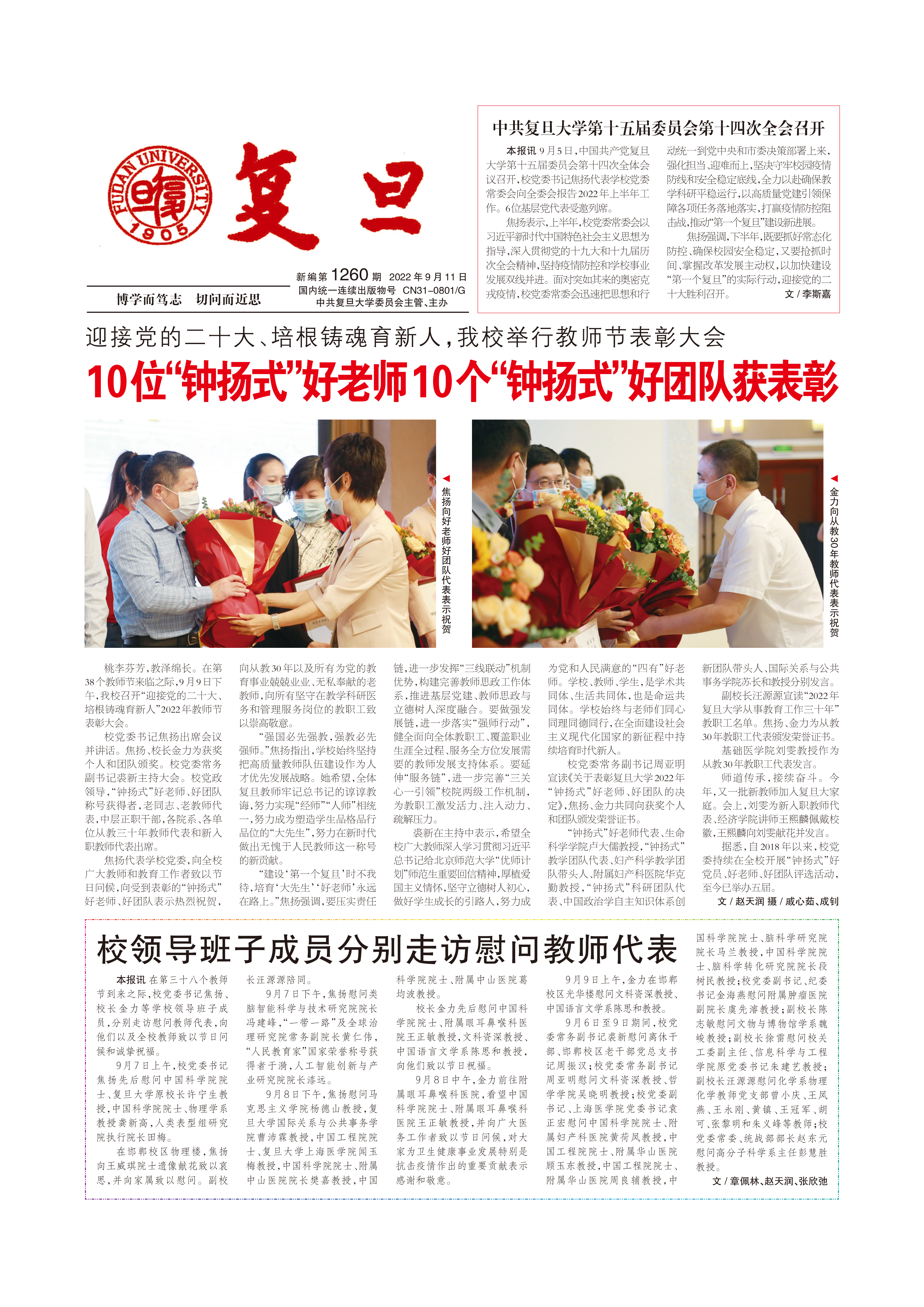 本报讯 在第三十八个教师节到来之际,校党委书记焦扬、校长金力等学校领导班子成员,分别走访慰问教师代表,向他们以及全校教师致以节日问候和诚挚祝福。9月7日...