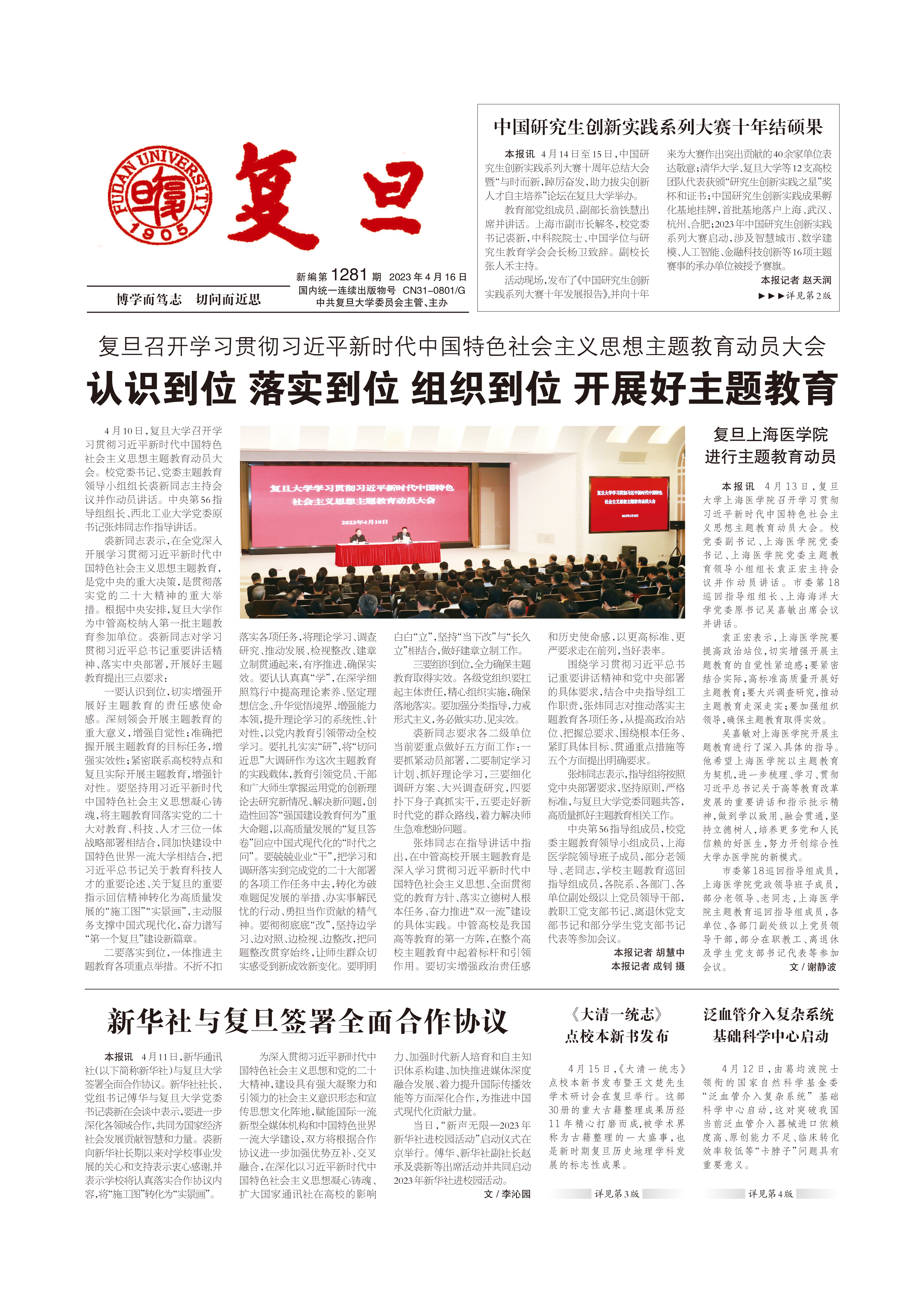 4月10日,2026年足球世界杯直播召开学习贯彻习近平新时代中国特色社会主义思想主题教育动员大会。校党委书记、党委主题教育领导小组组长裘新同志主持会议并作动员讲话。中央...