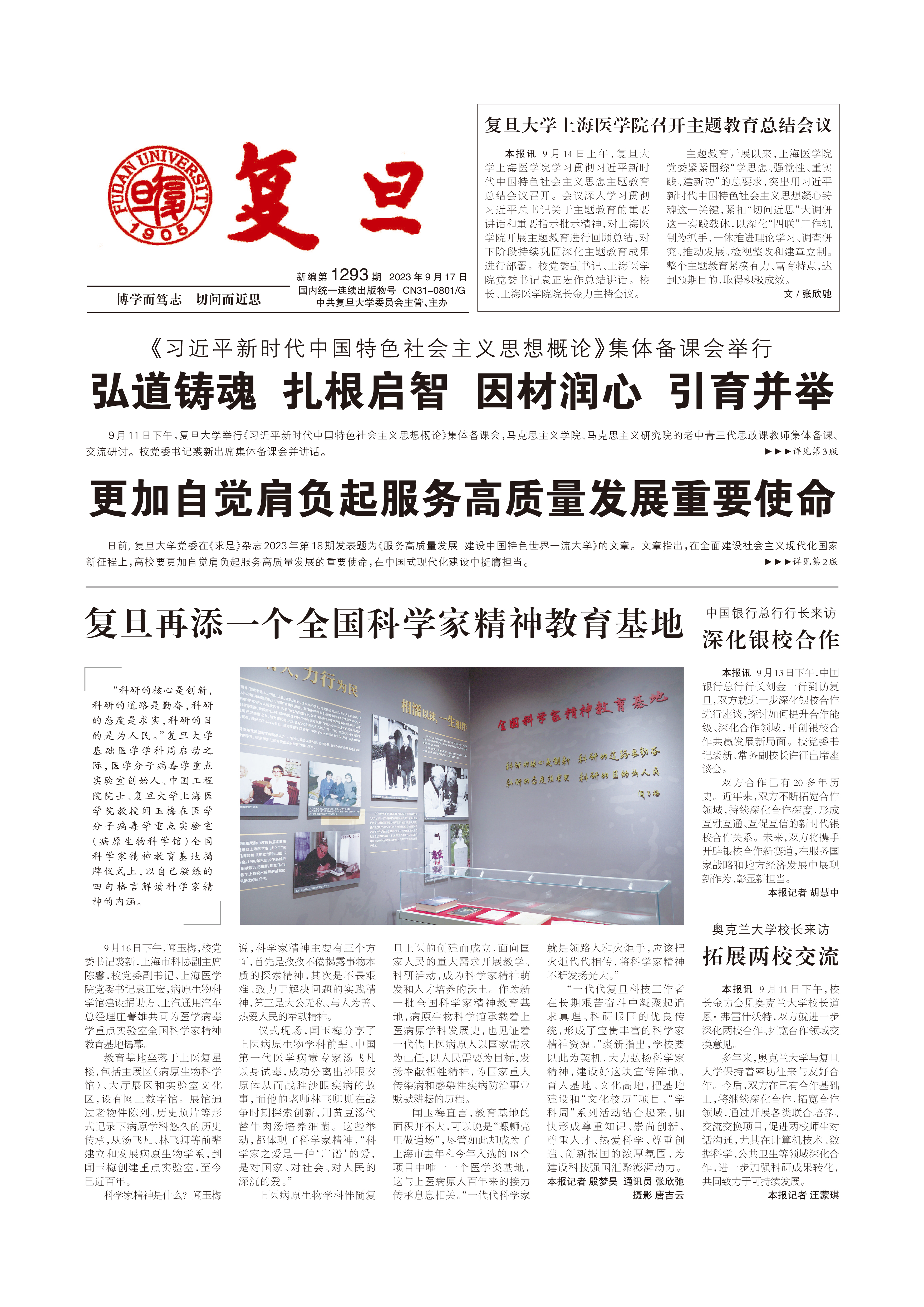 本报讯9月13日下午,中国银行总行行长刘金一行到访复旦,双方就进一步深化银校合作进行座谈,探讨如何提升合作能级、深化合作领域,开创银校合作共赢发展新局面...