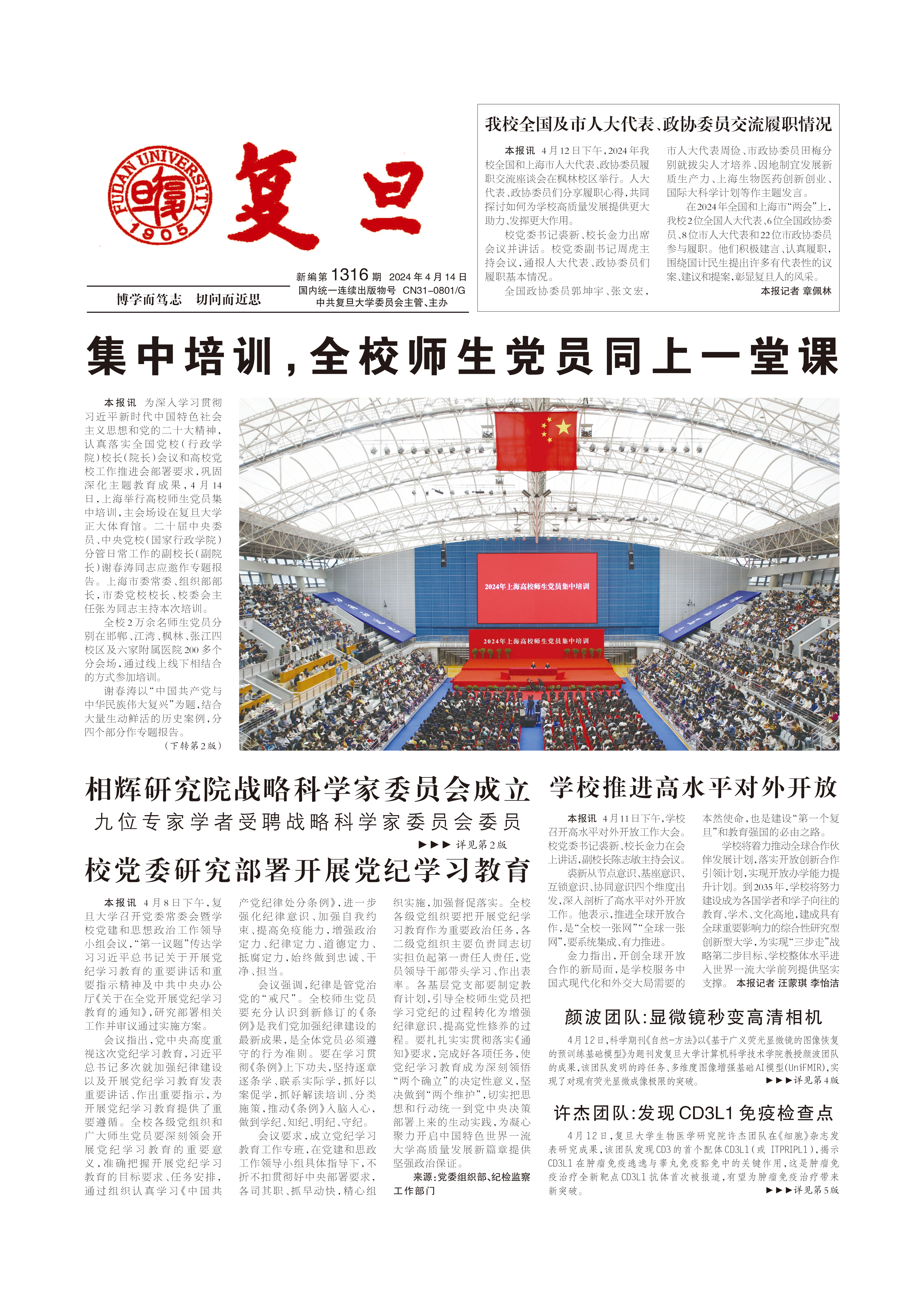 • 本报讯4月12日下午,2024年我校全国和上海市人大代表、政协委员履职交流座谈会在枫林校区举行。人大代表、政协委员们分享履职心得,共同探讨如何为学校高质量发...