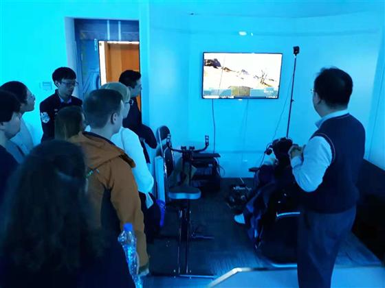 在信息学院实验室,叶士青教授向大家介绍了拥有自主知识产权的颞骨手术模拟器、3D分娩过程模拟软件、VR技术支持下的驾驶技术训练软件等发明,并通过展示与操作结合的方式,让师生们更清晰直观地认识到信息技术在健康领域的广阔应用前景。