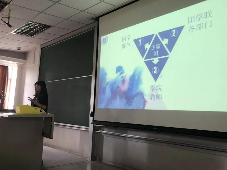 主席团副书记也向新生介绍了主席团统筹各部门的属性,并热烈欢迎大家投入护理学院团学联的大家庭。