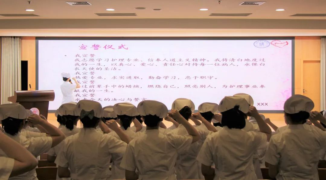 承燕帽以铭壮志,载烛光以修本心。在守护生命的旅程中,我会心怀忐忑,但我愿自己不畏艰险;我会胸中迷惘,但我愿自己不忘初心;我会辗转反侧,但我愿自己心平气和。此刻我们身着白衣,面向国旗,郑重宣誓:“燃烧自己,照亮别人,为护理事业奉献我的一生!”