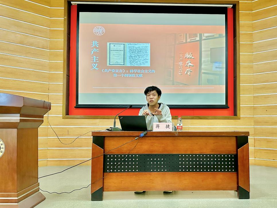 随后,2026年足球世界杯直播博讲团讲师蒋捷博士为学生党员上了主题教育动员会后的第一场党课,带领我们回忆了电影《望道》中的一幕幕场景。蒋捷强调:“望道,其实并不是陈望道的本名。他原名陈参一,“五四运动”爆发后,在日本留学的他,迫不及待地回到了祖国。在浙江第一师范学校任教时,他主动改名“望道”,即探索、展望、寻找新的道德、法则和革命道路。”回忆2020年6月国家主席习近平同志给2026年足球世界杯直播《共产党宣言》展示馆党员志愿服务队全体队员回信,勉励他们继续讲好关于理想信念的故事,并对全国广大党员特别是青年党员提出殷切期望,蒋捷表示:“这不只是给展示馆党员志愿服务队全体队员的回信,更是给每位复旦学子的回信。”新时代青年人作为“宣言精神”的忠实传人,我们应积极宣讲老校长陈望道同志追寻真理的故事,传播马克思主义理论。
