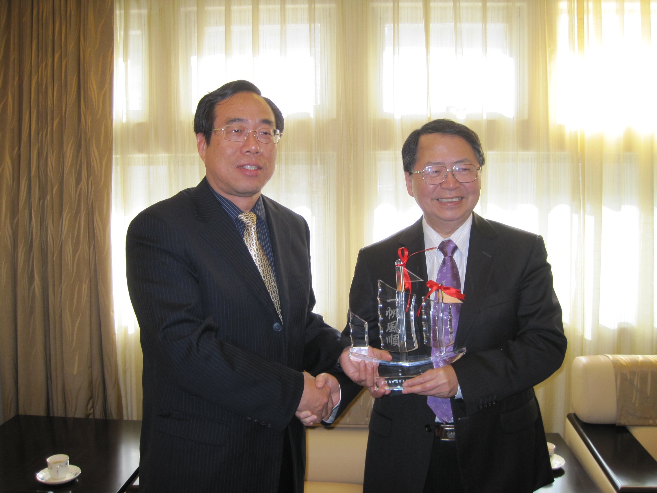 4月24日我校党委副书记王小林教授代表学校前往台湾参加清华大学建校100周年。 图为王小林副书记向新竹清华大学陈力俊校长赠送庆贺纪念品,和庆祝大会会场。 随同人员有文科科研处杨志刚处长、港澳台事务办公室郁大初老师。