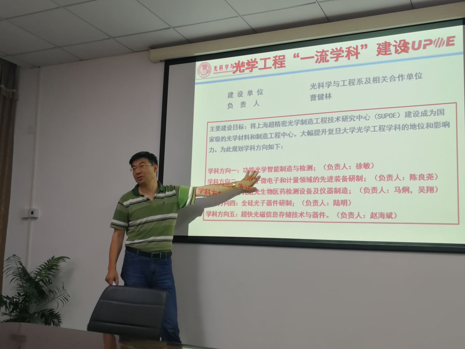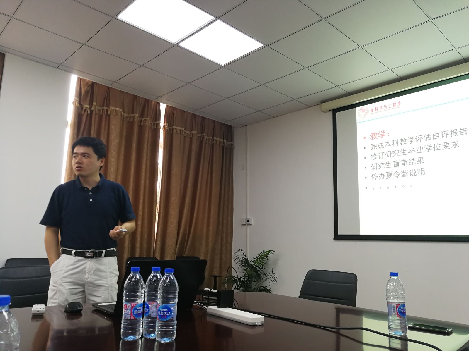 今天上午,光科系全体教师在科学楼423会议室召开学期期末总结会议,系主任陆明老师对光科系本学期的主要工作进行了总结。