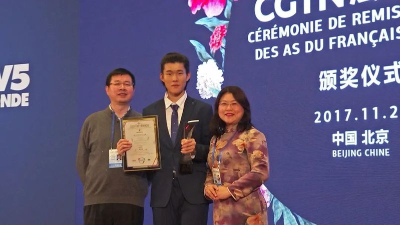 2017年冬,陆观宇获得央视法语大赛全球第三。