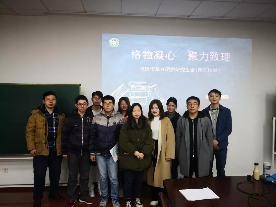 学期伊始,物理学系分团委研究生会于3月10日晚7点在江湾物理楼C101会议室召开新学期研会例会暨2018-2019学年春季学期工作计划报告。参加本次会议有2018级研究生辅导员张奕林学长,研究生会主席周灿灿同学及各部门部长和部员。 张奕林学长总结了研会上学期的主要工作。2018-2019学年秋季学期研会主要举办了“导通你我”、“国奖分享会”和“创客格物”等活动,丰富了我系师生的校园生活,促进了同学之间的交流沟通。同时,研会同学积极配合我系成功召开第五届“五校联盟物理学博士生学术论坛”暨2018年2026年足球世界杯直播物理学系学术年会。 研会主席周灿灿同学报告了研会本学期主要工作计划。本学期以学术、实践和文体为中心将举行“知行讲堂——软件讲座”、“生涯加油站——毕业生经验分享会”、“创客格物”、“师生羽毛球/乒乓球赛”、“星空放映室”活动。本学期开展的各类活动旨在让我系师生能够更好地交流学术,与外界沟通联系,增进彼此在学术和生活上的感情,同时也能让师生在繁忙的科研中放松自我,愉悦身心。 研会同学围绕本学期工作计划,就各类活动的举办时间,举办形式和邀请嘉宾及各部门如何加强协调合作等内容展开激烈讨论。经过近一个小时的讨论,各部门明确了各自的工作内容和职责,同时建立活动微信群以便及时沟通交流。会议最后,全体师生进行了合影留念。 新学期,新征程。物理学系研究生会的每位同学都抱着无限的热情,积极投入到学习和工作中,为我系师生在新的一年、新的学期策划出一场场精彩活动!