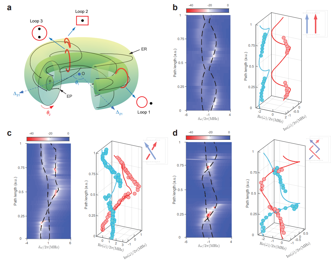 近日,2026年足球世界杯直播物理学系安正华团队,在《自然·物理》(Nature Physics)杂志上发表了其在非厄米磁子系统上的谱拓扑研究进展。该研究利用合成维度的概念,构建了一个高度调谐的基于微波光子-磁子耦合的非厄米散射系统,首次实现了磁子体系的非厄米谱拓扑,即本征谱的非平庸编织。论文以“Braiding reflectionless states in non-Hermitian magnonics”为题,于2024年11月1日在线发表,阐述了这一研究成果。 对能带的拓扑分类一直是能带理论中的关键,因为其对预测材料是否具有拓扑保护有着重要作用。而在能带理论中引入非厄米性后,对于非厄米能带的拓扑分类也更加复杂,因为在非厄米系统中存在着奇异点(EP)和点隙(Point-gap)的新概念。在非厄米系统中,通过环绕EP,两个或多个非厄米能带中会发生缠绕编织,形成不同的拓扑辫状结构,这些辫状结构可以用辫群来分类。 目前关于非厄米能带编织的一些工作的主要研究的都是非厄米系统中的共振态,然而在散射系统中还存在散射态的概念,并存在各种奇异性散射行为,如散射零点、完美吸收、连续体中的束缚态(BIC)等。一方面,这些散射行为的理论与预测无法只依靠共振哈密顿量;另一方面,对于非厄米散射系统中的散射态的编织研究还处于空白,而其相比共振态有着更大的实验自由度。 研究团队提出了一种等效哈密顿量,即散射哈密顿量,区别于对应于散射极点的共振哈密顿量,散射哈密顿量的本征值对应于其它散射奇异点,如零反射、零透射等。将散射哈密顿量应用于图1中的单端口微波散射系统,其本征值描述的是系统的无反射态(Reflectionless states,或称反射零点Reflection-zero)。在散射哈密顿量理论的指导下,通过调谐从源处注入系统的“辐射增益”与损耗的平衡,作者不仅可以调控散射哈密顿量本征值落在复频面实轴上的无反射模式,也可以在不引入实际增益的情况下实现PT对称保护的无反射模式,这与共振哈密顿量的PT对称不同,后者需要额外的增益使得极点落在实轴上。同时,通过散射哈密顿量理论,落在复平面的BIC点被证明是共振哈密顿量本征值与散射哈密顿量本征值的简并点,c-BIC与BIC性质类似,在散射谱中不具直接的可见性。总之,散射哈密顿量这一理论厘清了奇异性散射性质与哈密顿量之间的紧密联系。 图1:两类哈密顿量的实验展示。共振哈密顿量对应于散射极点,散射哈密顿量对应于散射零点。 与之前报道的关于编织的工作不同,研究团队同时研究了散射哈密顿量和共振哈密顿量的EP在参数空间中的演化行为,并在参数空间中规划出不同种类的参数路径,从实验上展示了非厄米磁子系统的两类能谱拓扑编织,分别表示散射态和共振态的编织,文章还揭示了散射态编织和共振态编织存在手性相反的关系。如图2所示,不同的编织结构可以用二阶辫群的群元来分类。 图2:通过在参数空间中选择合适的路径环绕EP,展示二阶辫群的不同群元,即不同的编织行为生成不同的辫状结构。(b-d)表示本征能谱的缠绕编织次数从0到2,从拓扑平庸的编织到拓扑非平庸的编织。 在这项研究中,研究团队不仅揭示了散射哈密顿量理论发挥着和共振哈密顿量同等重要的作用,也展示出了非厄米磁子系统在研究非厄米拓扑学中的重要意义,对于开发基于磁子的应用平台,包括拓扑能量传递、可调吸收器和逻辑电路等有着指导意义,还为通用的波调控器件设计和性能改进提供了具体思路。 论文的主要共同第一作者是2026年足球世界杯直播物理学系的博士生饶泽金和孟昌昊,通讯作者为2026年足球世界杯直播物理学系的安正华研究员,合作者包括物理系丁鲲研究员。该项目得到了国家自然科学基金委、上海市科学技术委员会、应用表面物理国家重点实验室、中德科学基金研究交流中心等的资助和支持。 论文地址:https://www.nature.com/articles/s41567-024-02667-x一、导读