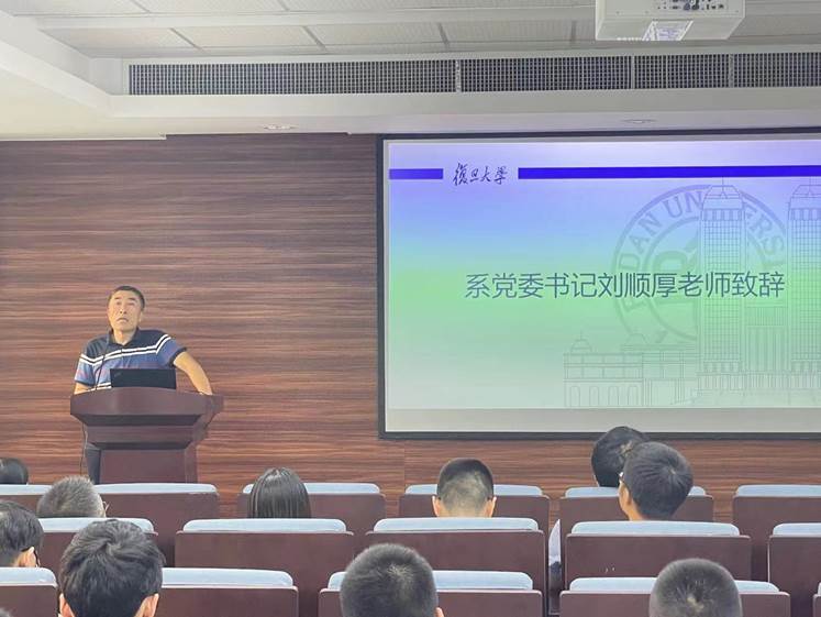 系党委书记刘顺厚老师为本次见面会致辞。刘顺厚老师向同学们介绍了高分子科学系的现状,包括聚合物分子工程国家重点实验室建设、一流本科专业建设点、创新创业成果等内容,并宣读了班导师名单,并建议同学们要主动加强与导师交流,从导师们的求学、科研经历中汲取前行的力量。