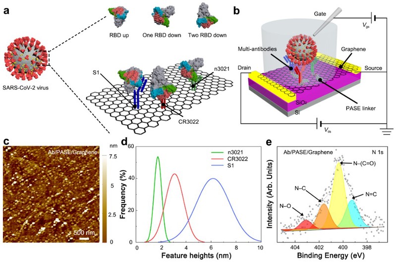 图1.用于新冠病毒抗原检测的多靶向位点抗体组合晶体管传感器