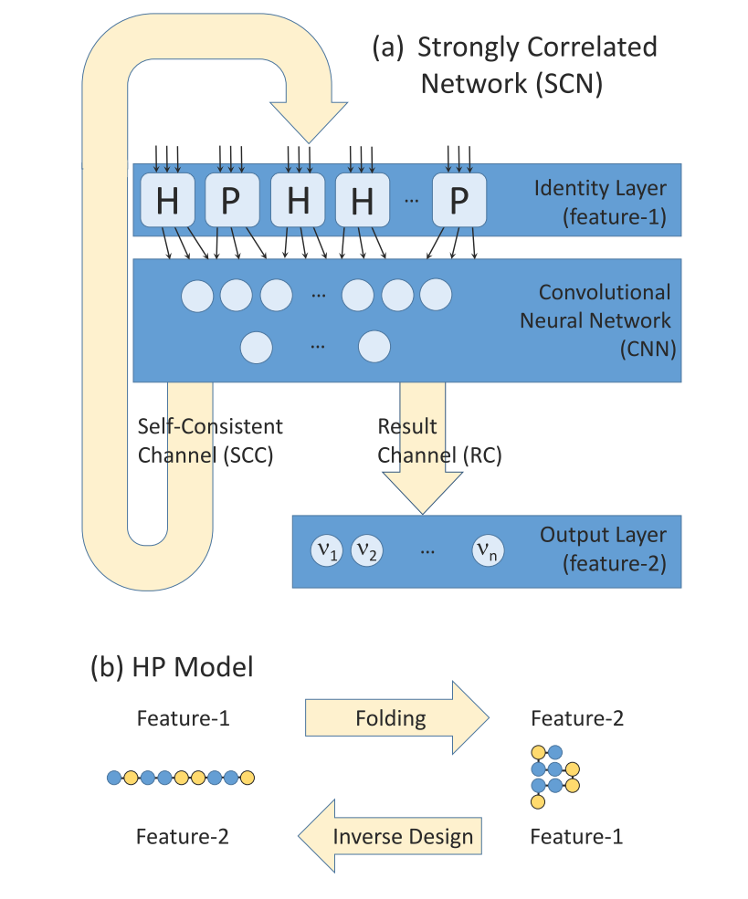物理实体所处的环境再由其它实体的物理属性联合决定,通过这种自洽迭代形成物理属性与环境的强关联,从而极大地提高神经网络预测的准确性。该方法目前被运用于HP蛋白质模型的预测与反向设计中,取得良好的效果;他们发现新方法特别适合解决涉及简并度的问题。