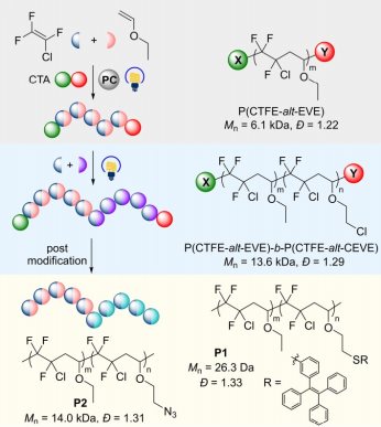图1 三氟氯乙烯与乙烯基醚的有机光催化可控自由基交替共聚