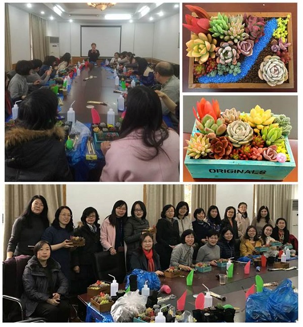 3月8日下午,我系妇委会举办“青春护绿进校园”多肉植物栽培活动,庆祝这个美丽的节日,以实际行动践行植绿护绿,倡导绿色种植的理念。我系女教职工积极踊跃参加到活动中来,充分发挥想象力和创造力,亲手制作自己喜爱的盆景,现场其乐融融。此次多肉栽培活动,使老师们暂时放下了忙碌而紧张的教学和科研工作,大家展示了积极向上、美丽健康的精神风貌,收获了健康和快乐的好心情。