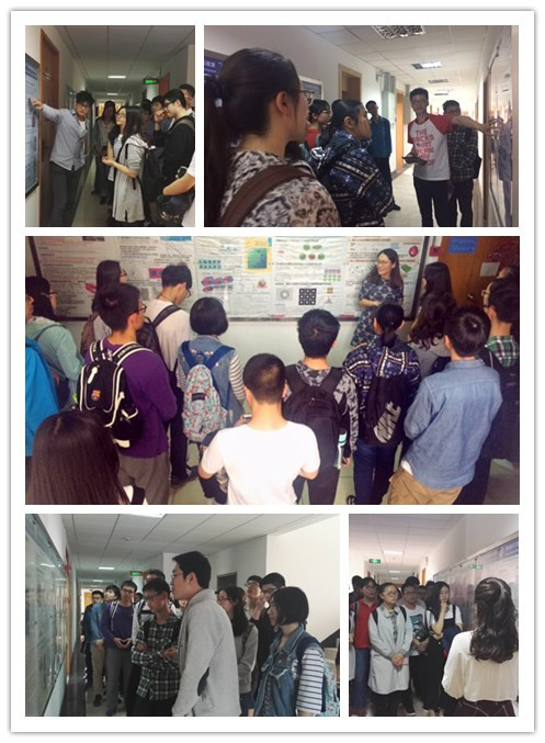 活动前期系内进行了精心地组织,在高年级研究生中挑选了多位颇具亲和力、学术水平较高、表达能力较强的学生担任跃进楼和袁成英楼各楼层的讲解员,由他们负责介绍每个楼层各个课题组的墙报以及重要的仪器设备。