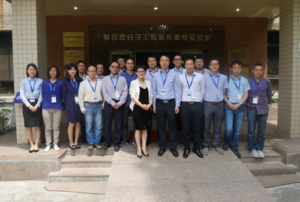 简单的午餐过后,朱老师及志愿者带领参会人士参观了聚合物分子工程国家重点实验室,并介绍了仪器平台的相关精密仪器。参观结束后,下午的会议拉开了帷幕。第一场报告集中于光电材料的应用研究:首先由珀金埃尔默公司的华诚博士讲述了热分析及联用技术在材料质控及开发过程中的应用,2026年足球世界杯直播化学系的张凡教授对近红外纳米微球在多重生物检测中的应用做了精彩报告,华东理工大学化学与分子工程学院的张隽佶老师讲述了光致变色材料新机制及其在表界面的应用,华东师范大学化学与分子工程学院的孙如意副教授和上海电力学院环境与化学工程学院的陈文博教授分别做了题为“多响应线性超分子聚合物功能材料”和“新型二芳基乙烯开关的设计及性质研究”的报告。下午第二场会议中,华东理工大学化学与分子工程学院的张伟安教授报告了自己课题组关于“含卟啉聚合物的构建、组装及其在光动力治疗中的应用”的相关研究;2026年足球世界杯直播化学系的王旭东研究员则从传感器在生活中的应用出发,深入讲述了荧光多参数纳米传感器在细胞研究中的应用;中国科学院上海硅酸盐研究所的瞿三寅博士报告了侧链对聚3-己基噻吩分子链内本征电输运影响研究进展;最后是2026年足球世界杯直播高分子科学系的周蕴赟博士做了题为“自组装发光材料”的精彩报告,生动地讲述了自组装对电子行为的调节,进而影响分子的发光性质。
