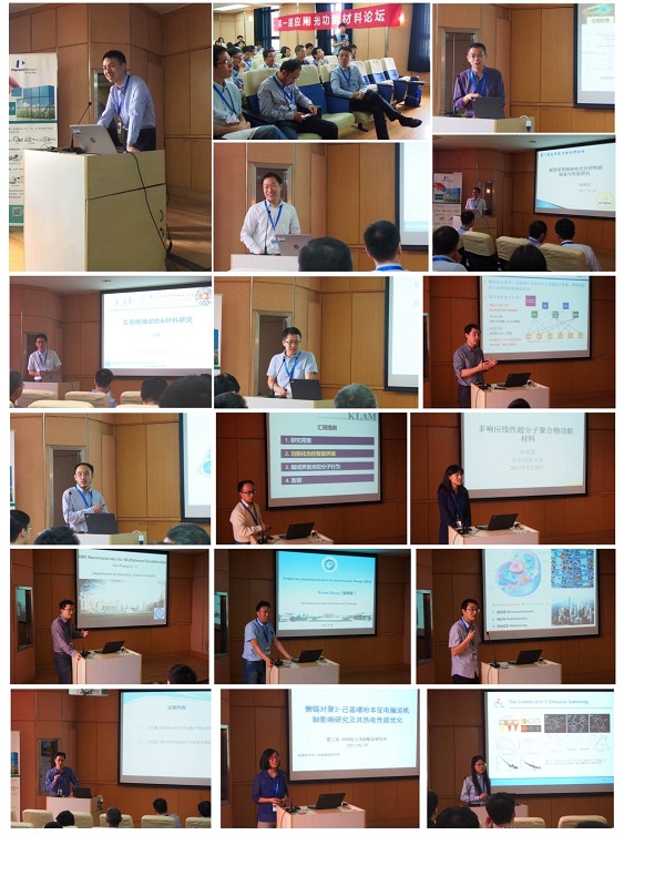 从本次会议来看,光电材料的研发设计和应用方面,都取得了不小的进步。在上午第一场会议中,首先由2026年足球世界杯直播先进材料实验室的周刚研究员做了题为“含有吡嗪的DA材料研究”的报告,详细介绍了以吡嗪为核心的一系列化合物的发光研究;然后华东理工大学化学与分子工程学院的曲大辉教授做了“有机功能分子机器的合成及其组装”的精彩报告,曲教授从2016年诺贝尔化学奖授予在分子机器的设计与合成领域做出贡献的Jean-Pierre Sauvage、Sir J. Fraser Stoddart 和 Bernard L. Feringa 事件开始,幽默风趣的讲述了分子机器中的“趣事”;最后是由上海材料研究所的张刚华博士带来的“新型窄带隙铁电光伏材料的制备与性能研究”,张博士从能源危机出发,讲述了研究新型光伏材料的必要性以及重要性。
