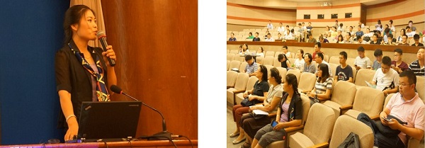 周广荣做会议报告 前排电子显微学报主编李宁春与学员
