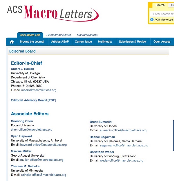 我系陈国颂教授从2018年2月起任高分子领域权威杂志、美国化学会ACS Macro Letters副主编,这是该杂志首位来自亚洲科研机构的副主编。